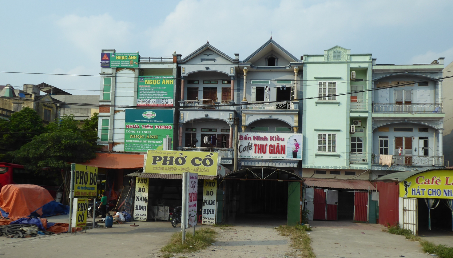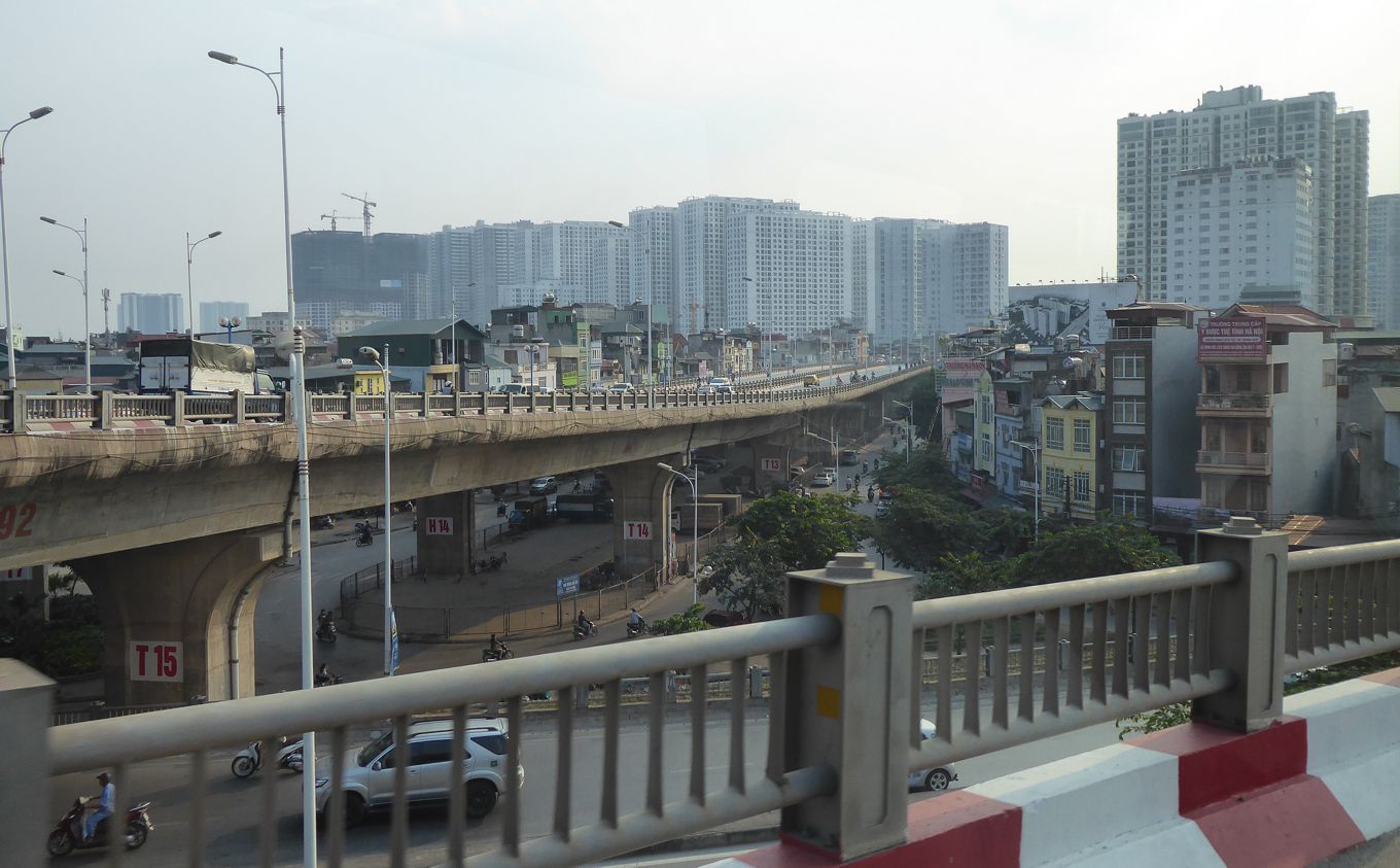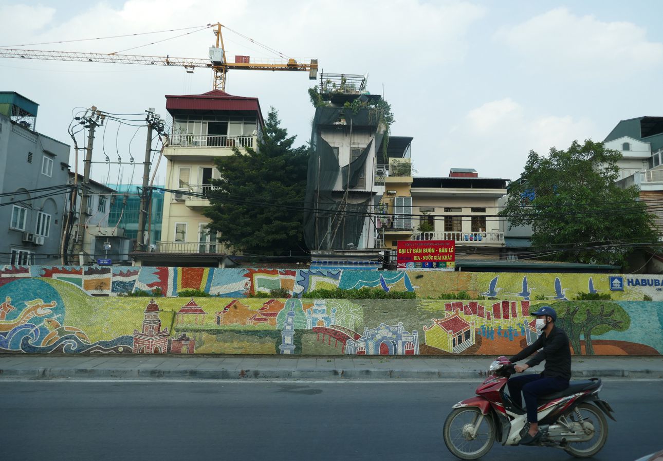 Lange geht es über Land. Irgendwann kommen wir vom Geschaukel auf der Straße inzwischen ziemlich ermüdet in den Außenbezirken von Hanoi an – hier entsteht die moderne Wohnstadt, eine Ansammlung von Wolkenkratzern, die so gar nicht ins Stadtbild, das man sonst so sah, passen wollen.