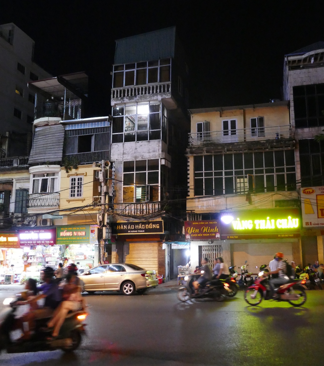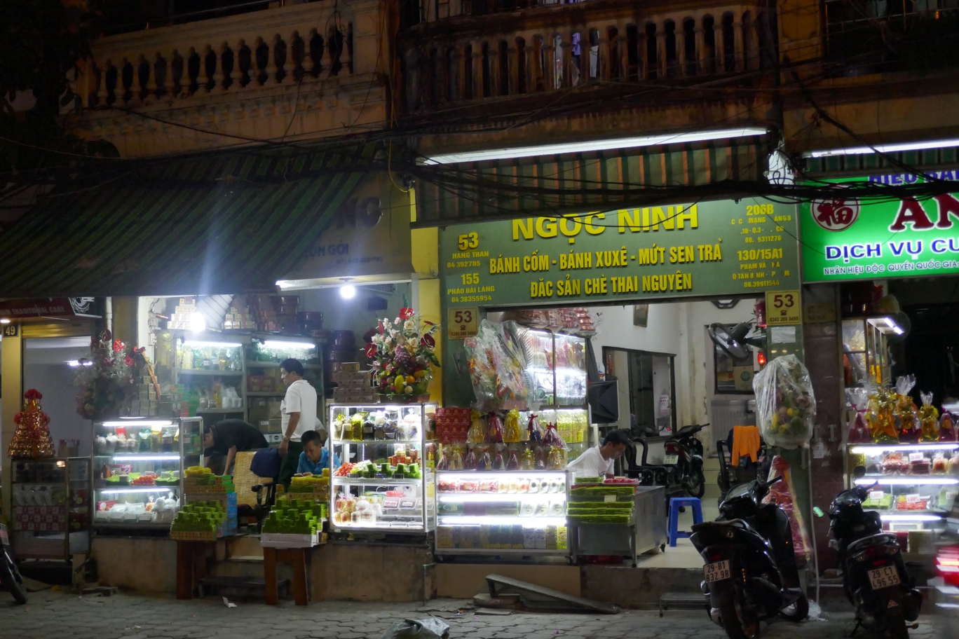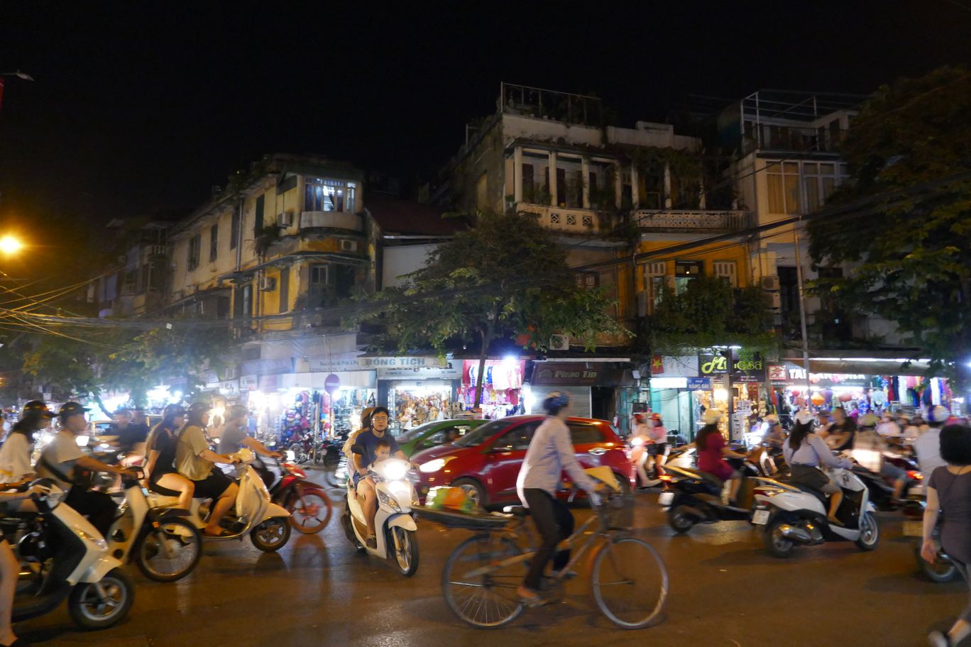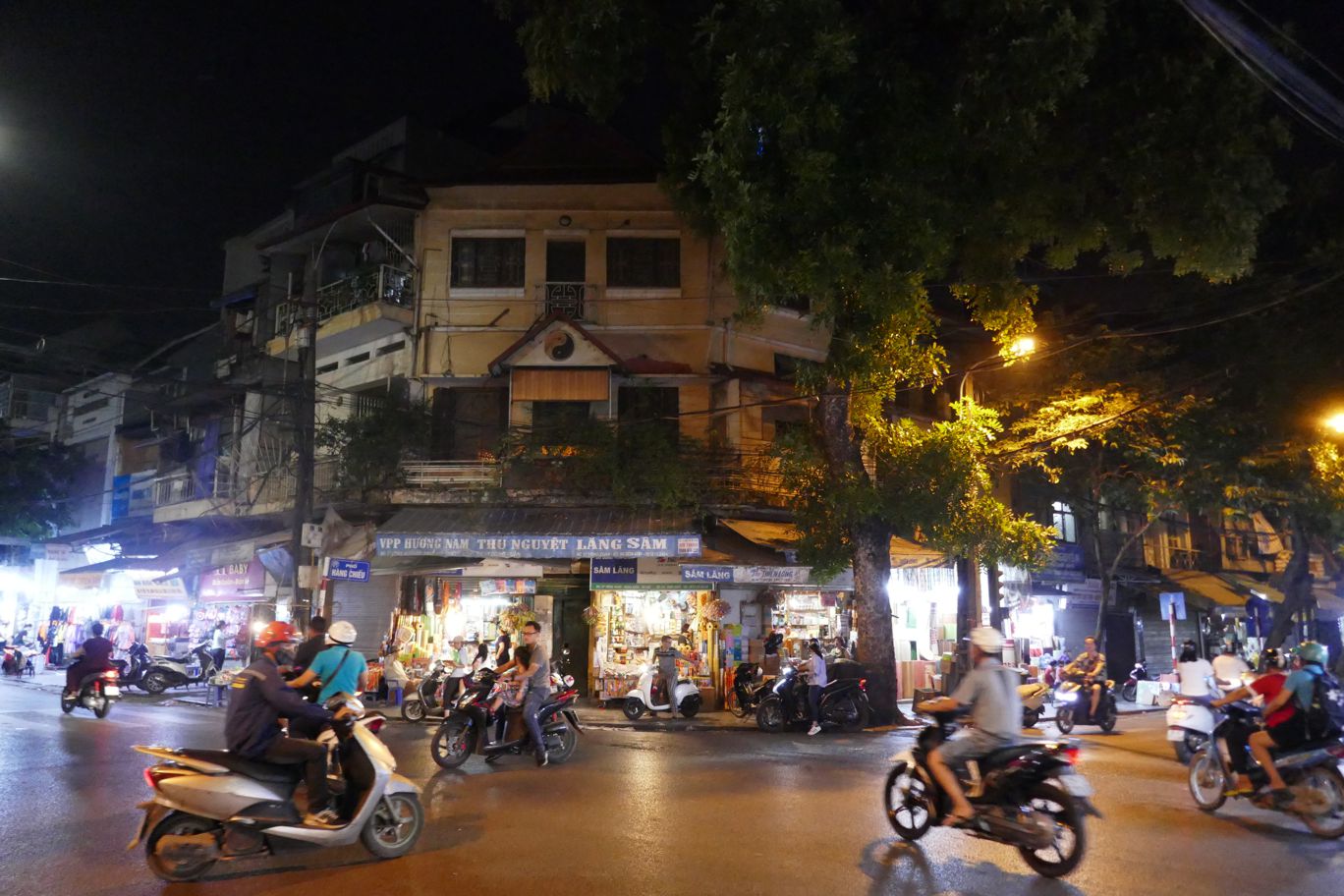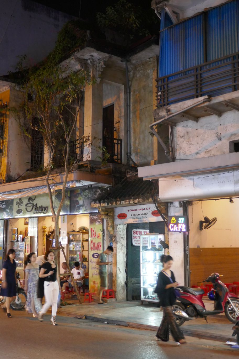 Wir spazieren entlang der geschäftigen Straßen in Richtung Hotel, bei ziemlich schummrigen Lichtverhältnissen, die sich durch die nicht sonderlich hellen Straßenlaternen und dem wenigen Licht, was aus den Läden nach außen dringt, ergeben. Aber die Szenerie macht uns neugierig, uns so beschließen wir, noch einen längeren Nachtspaziergang durch Hanoi zu machen, und vielleicht auch unterwegs irgendwo etwas zu essen.