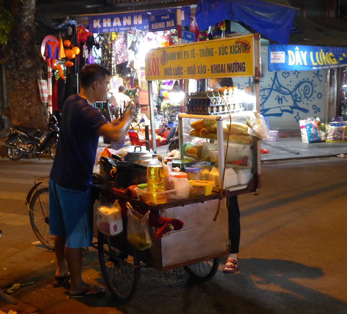 Unzählige solcher kleiner Garküchen haben geöffnet. Im Sitzen oder Stehen wird gekocht, gebraten, gegessen – anscheinend geht man gerne zum Abendessen aus, zusammen, oder ist zumindest beim Essen gerne dort, wo auch viele andere Menschen sind.