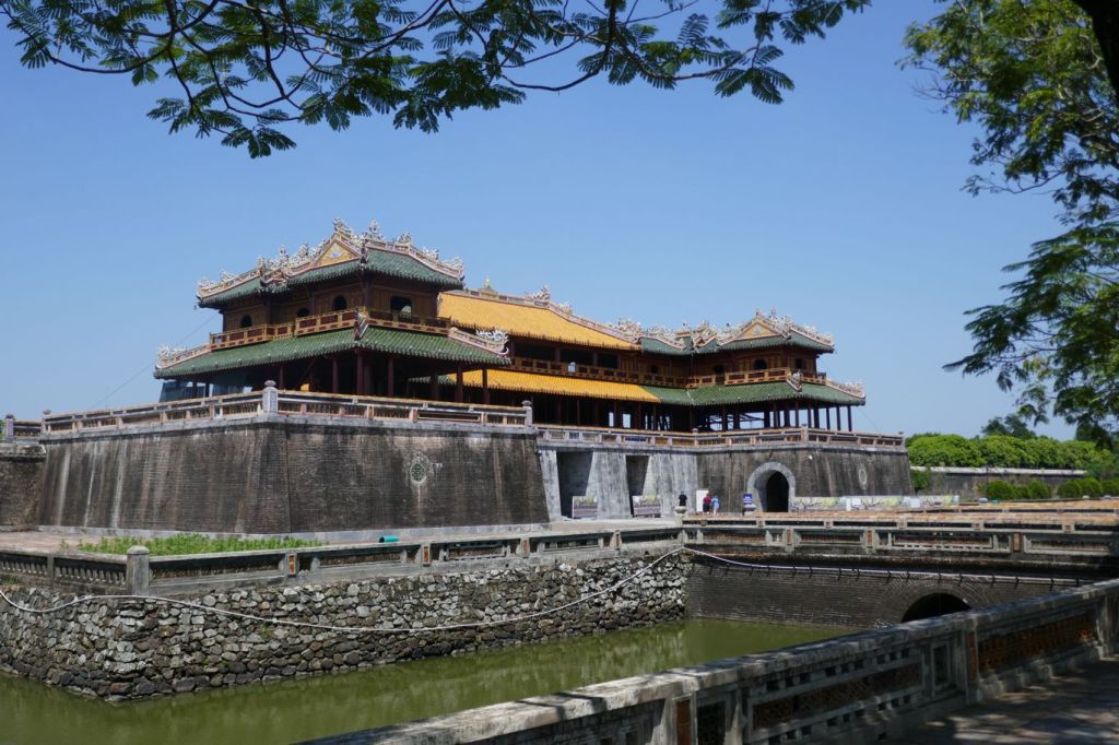 Nach Hanoi und der Halong Bucht geht es für uns zum nächsten „großen Ziel“ – in die alte Kaiserstadt Hué. Früh am Morgen fahren wir zum Flughafen; die mit etwa 600 Kilometern doch recht lange Strecke wird mit einem Inlandsflug von Vietnam Airlines überwunden. Wir sind gespannt auf all das, was uns in der traditionsreichen alten Kaiserstadt erwarten wird, die im Zentrum immer noch von einer riesigen Zitadelle dominiert wird, in der der alte Kaiserpalast samt der einst verbotenen Stadt liegt.