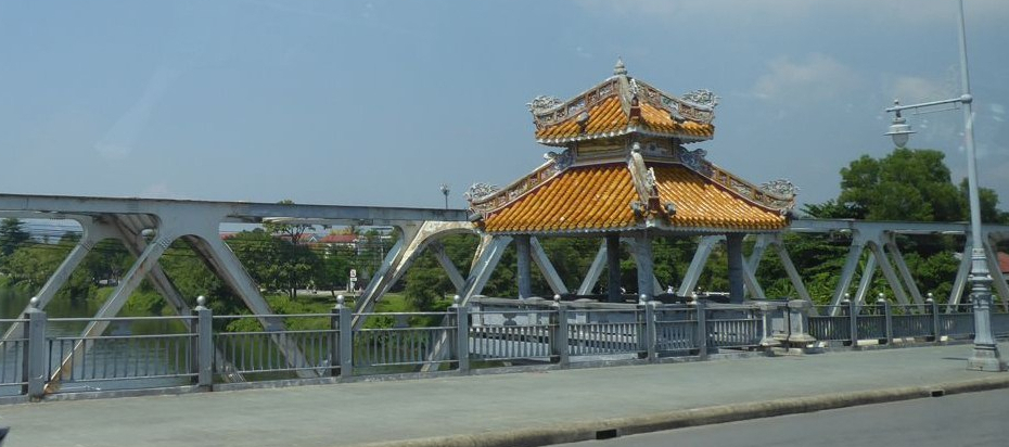 Irgendwann überqueren wir den Sông Hương oder Hương Giang, den Fluss der Wohlgerüche, der gerne auch Parfum-Fluss genannt wird – ein Name, von dem keiner mehr so recht weiß, wo er herzuleiten ist, von den Pollen und Blüten, die im Frühjahr auf dem Wasser treiben, oder von wohlriechenden Edelhölzern, die auf dem Fluss transportiert wurden.