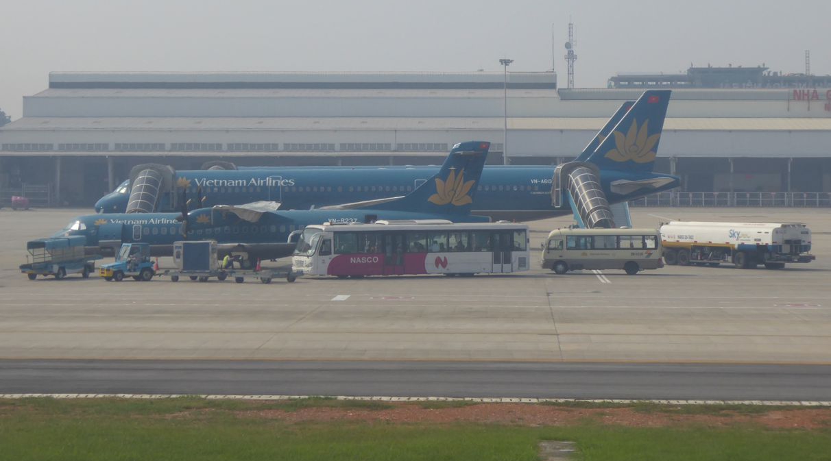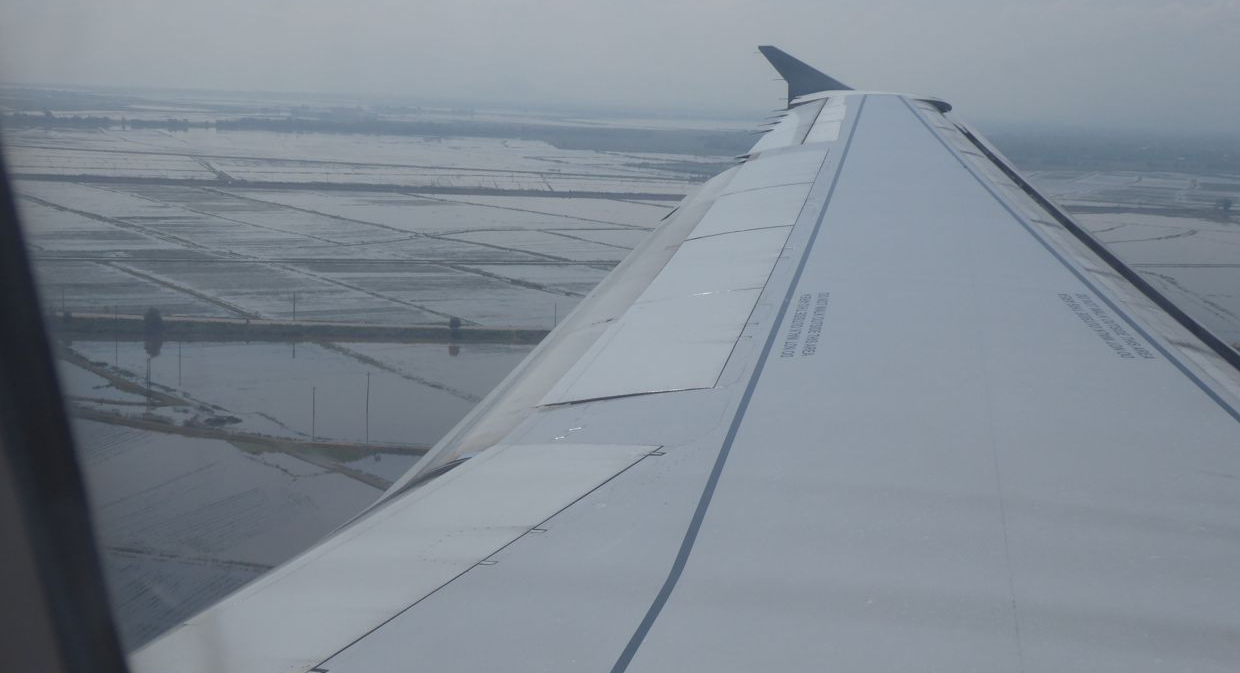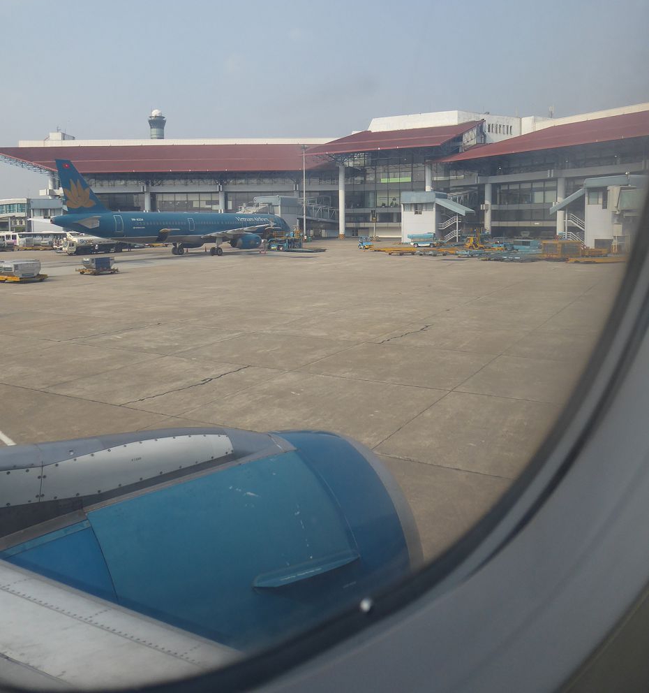 Der Flughafen von Hanoi ist überschaubar klein, modern, gerade mal vor ein paar Jahren in kurzer Zeit gebaut, die Abwicklung der Fluggäste läuft zügig. Mit sehr neuem Flugzeug geht es gen Süden, unter uns sind Reisfelder und Dörfer zu sehen, oft auch die Küste.