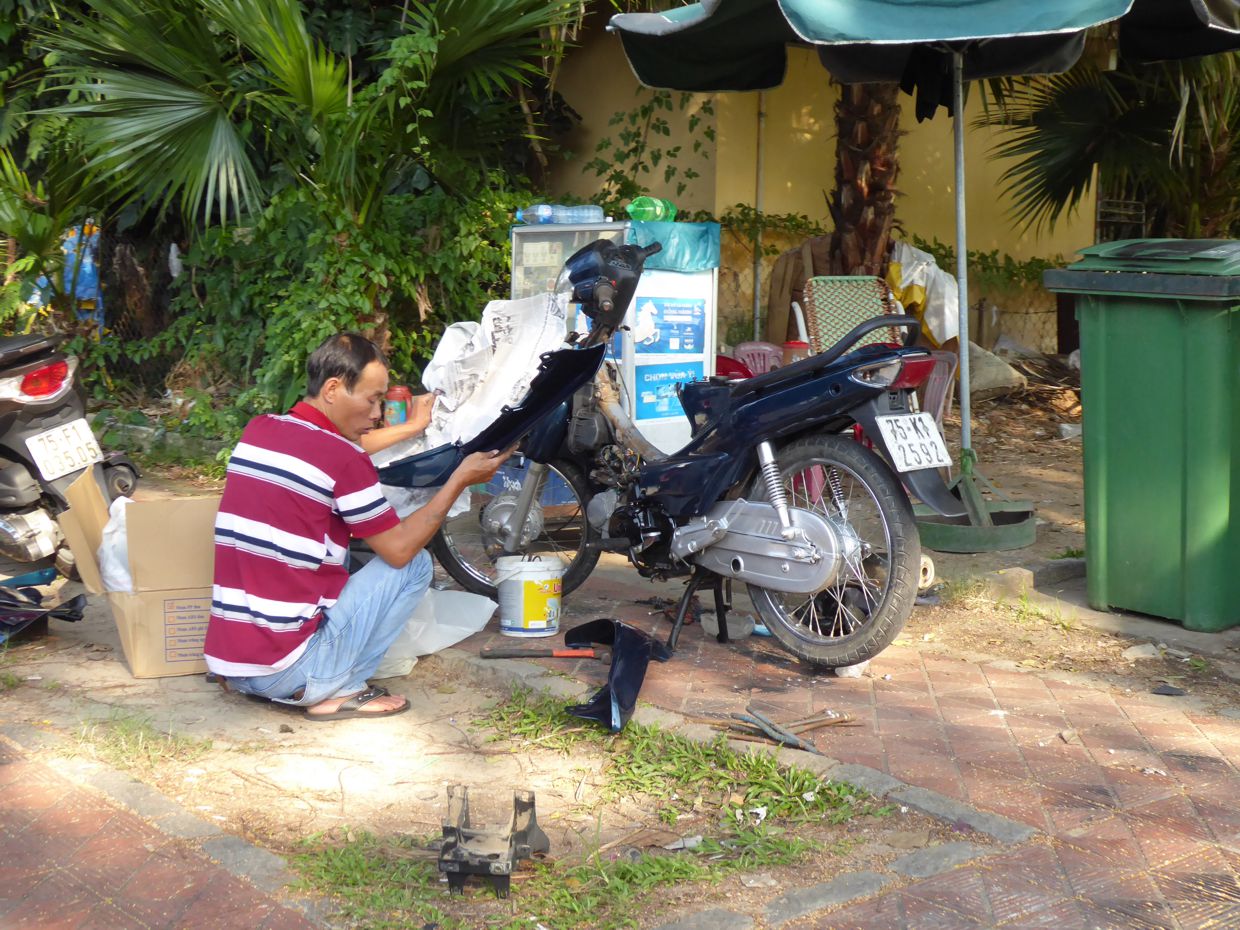 Wir sind ja inzwischen in Zentralvietnam angekommen. Nähme man die alten Grenzen von 1954 bis 1976, hätten wir die Grenze des früheren Nordvietnam zum damaligen Südvietnam überschritten, die etwa 100 Kilometer nördlich von Hué verlief. Damit ist auch klar, dass wir uns in einem Gebiet aufhalten, in dem der Vietnamkrieg am heftigsten tobte.