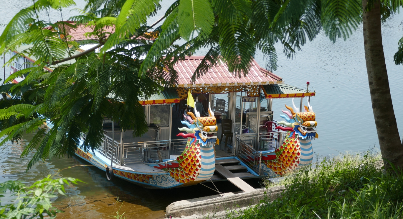 Zu riechen gibt es für uns am Fluss nichts, wir sehen dafür viele Drachenboote, auf denen Touristen zu den Sehenswürdigkeiten transportiert werden.