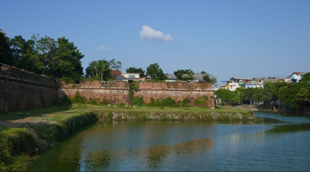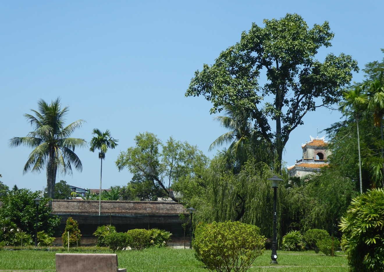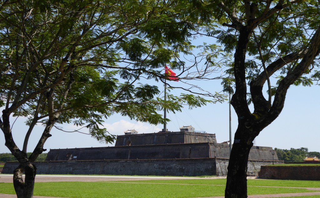 Wir fahren weiter in Richtung Stadtmitte. Hué ist eine der alten Kaiserstädte Vietnams, beherrscht von einer riesigen Zitadelle, einer Festungsanlage mit mehrfachem Mauersystem, Schutzbauten, wenigen Toren, von Wassergräben durchzogen und umschlossen.