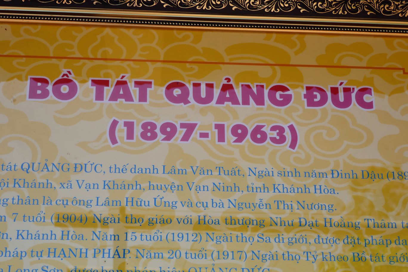 Einer der Mönche, Thich Quang Duc, entschied sich als Protest zu einer Selbstverbrennung – geschehen dann in Saigon 1963. Der hellblaue Austin, mit dem er sich nach Saigon fahren ließ, ist im Kloster ausgestellt; hinter der Windschutzscheibe liegt das Foto von diesem Ereignis. Eine schreckliche Aktion mit großer öffentlicher Wirkung, die den Widerstand der Bevölkerung gegen das Regime in Südvietnam weiter verstärkte.