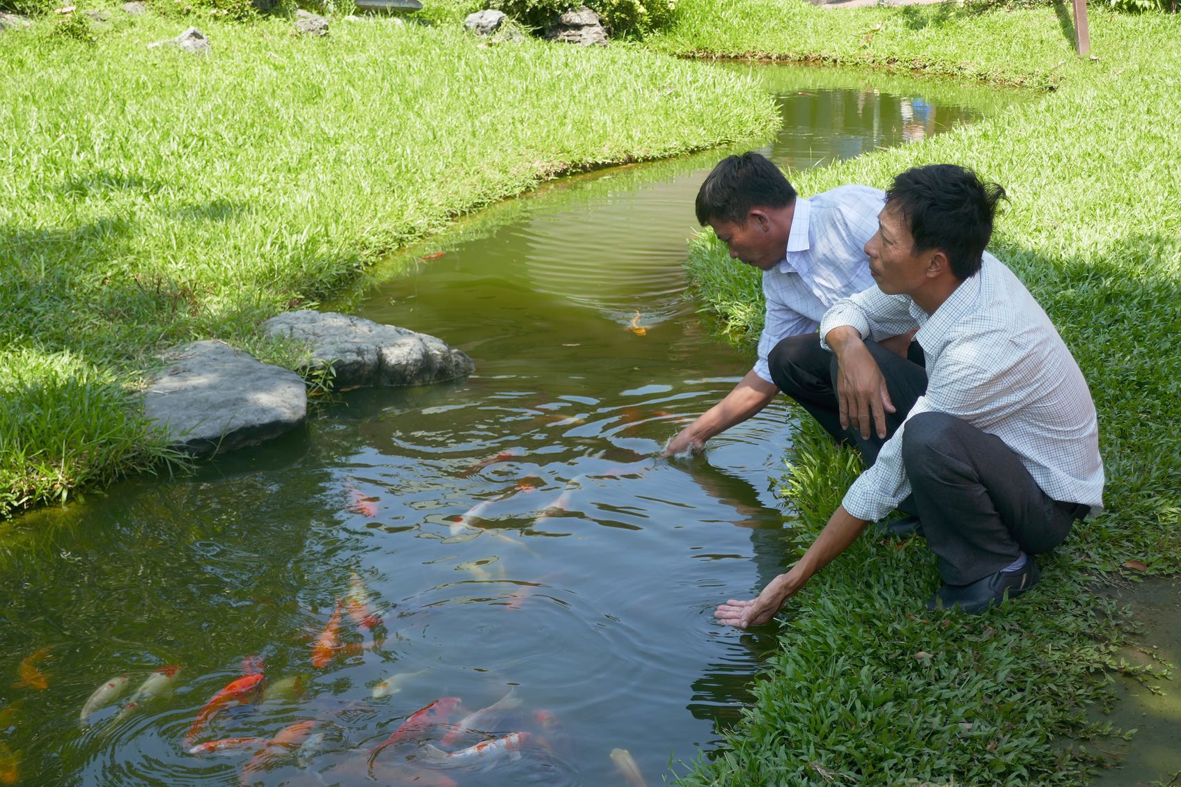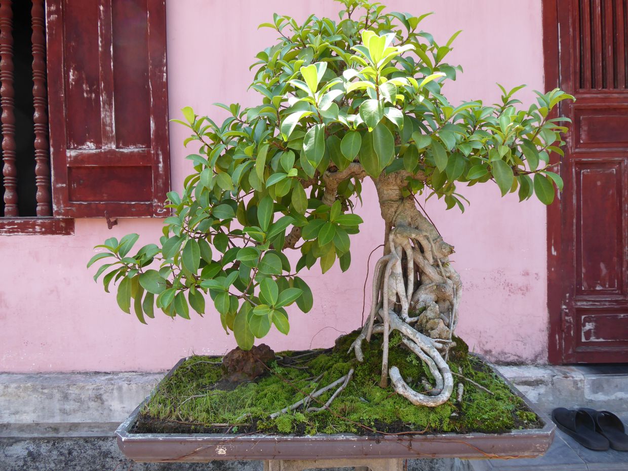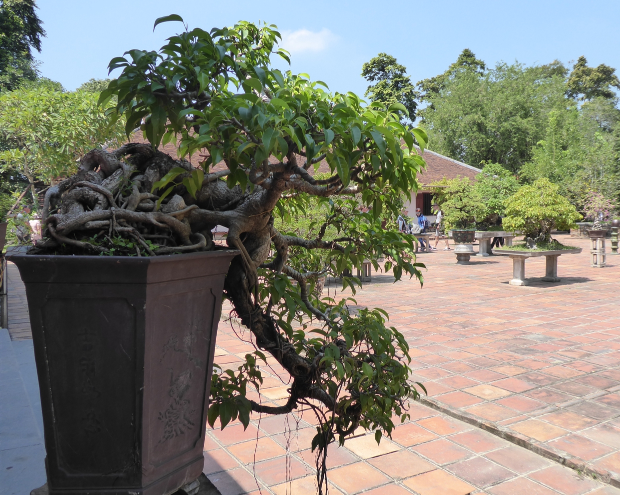 Das ganze Areal auf dem Hügel vermittelt den Eindruck einer sehr gepflegten Tempelanlage mit kleineren, besonderen Gebäuden, schönen und ruhigen Gärten, altem Baumbestand, Fischteichen und kleinen Plätzen, gestaltet mit vielen verschiedenen Bonsais und Kultgegenständen. Wir sehen einige Mönche und erfahren, dass die Anlage immer noch aktives Kloster ist.