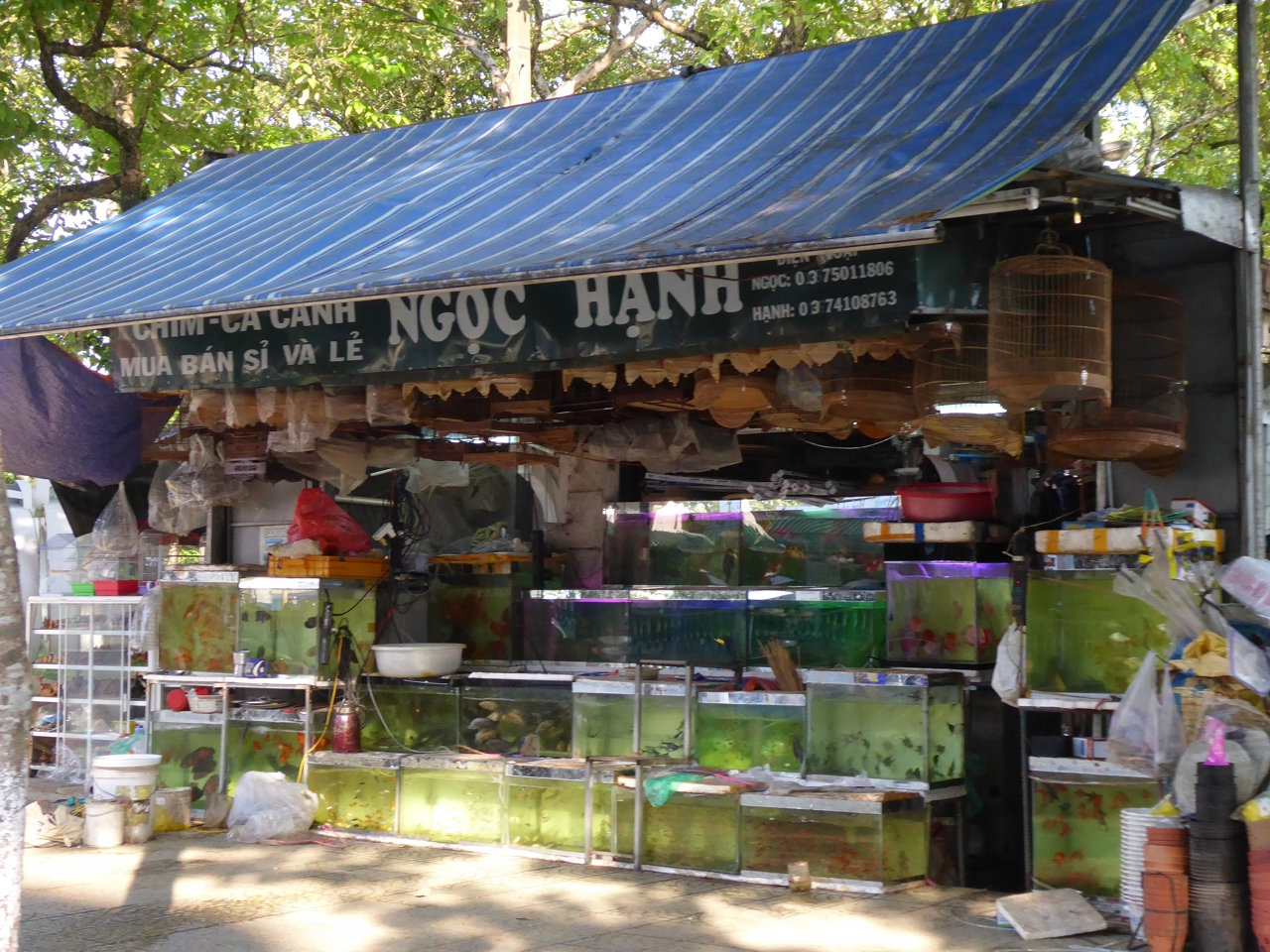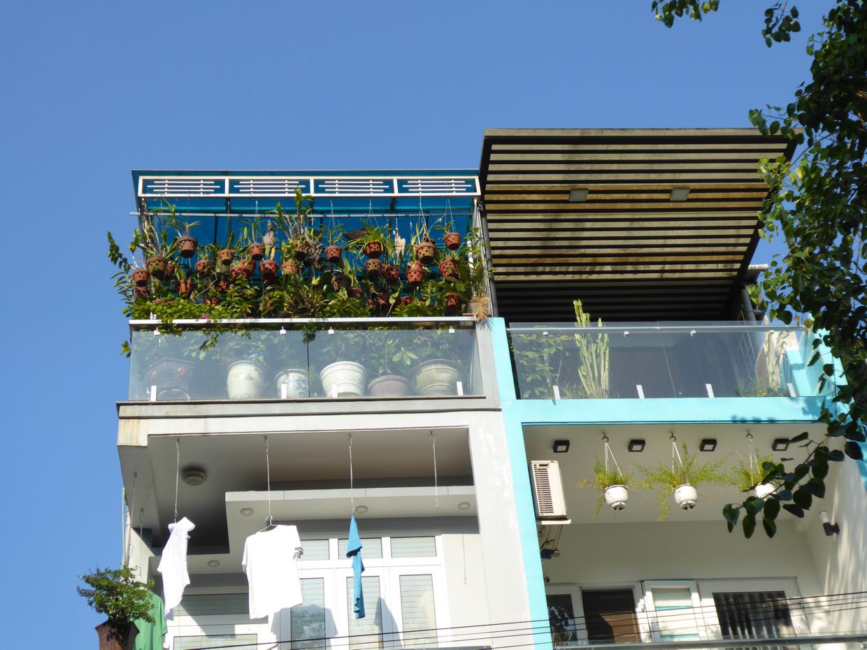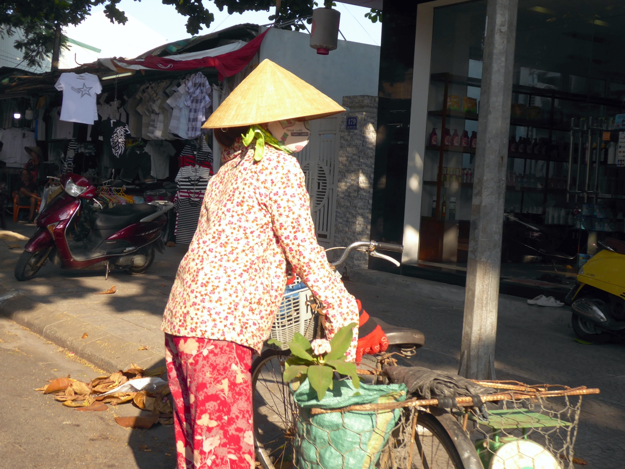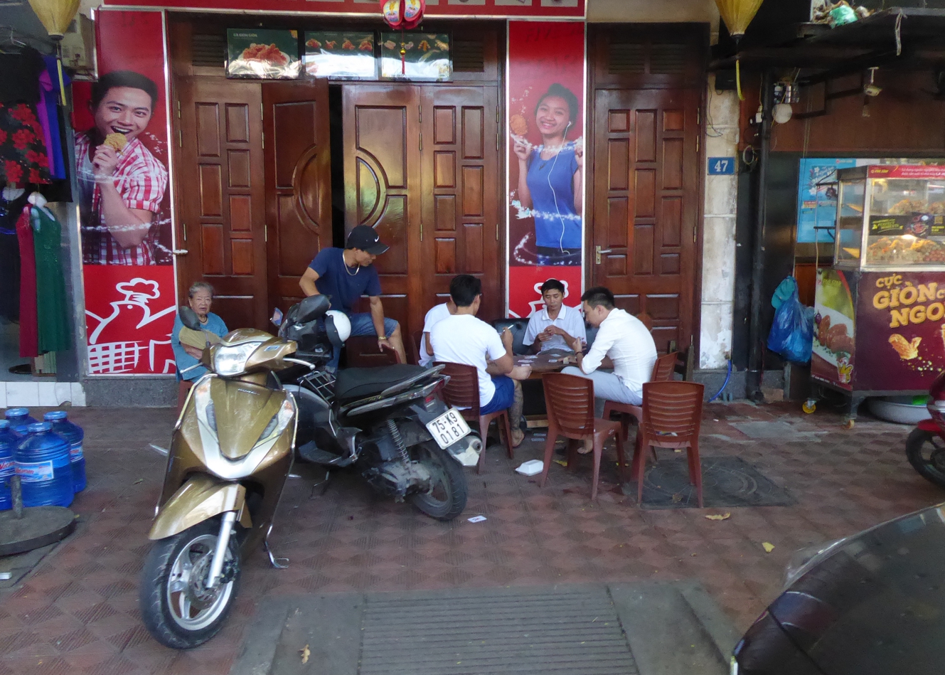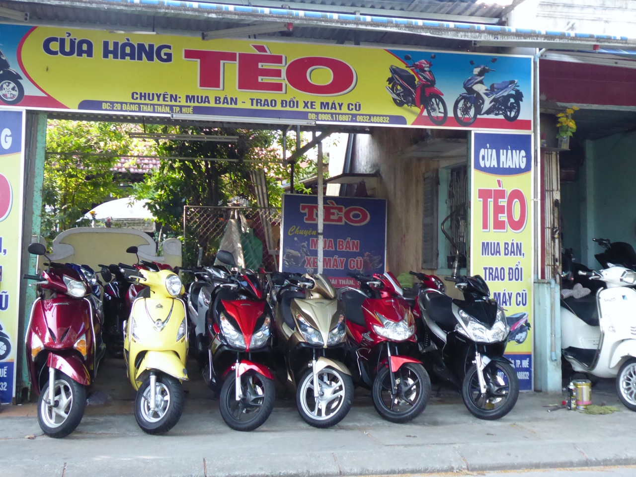 Entlang der Straßen zeigt sich eine bunte Mischung an Häusern mit Reparaturwerkstätten, Mopedläden, kleinen Restaurants, Bekleidungsläden und mehr, zwischendrin auch Wohngebäude, ein Kindergarten oder eine Schule, bunt bemalt. Immer wieder sieht man eine der mobilen Garküchen, die Suppe anbieten. Ist es mal möglich, in einen Topf zu blicken, ist das meist eine klare Brühe, vielleicht auch mal eine Ente; die Nudeln, verschiedene Knödel und auch verschiedene Kräuter gibt es rundherum zur Auswahl. Auf den Balkonen der Häuser sieht man, dass sie Lebensraum sind – am Mobiliar, an der Dekoration, an Pflanzen, oft so viele dass es fast ausschaut wie ein Kleingarten. Aber das Alltagsleben läuft auch in Hue vor allem entlang der Straßen ab.