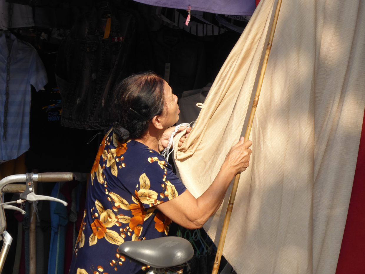 Wir fahren recht lange mit dem Bus durch kleine Straßen zunächst an der Zitadelle, dann am Fluss entlang. Auf den Straßen sind wie immer viele Mopeds unterwegs, und entlang der Straßen wird verkauft, repariert und gegessen.