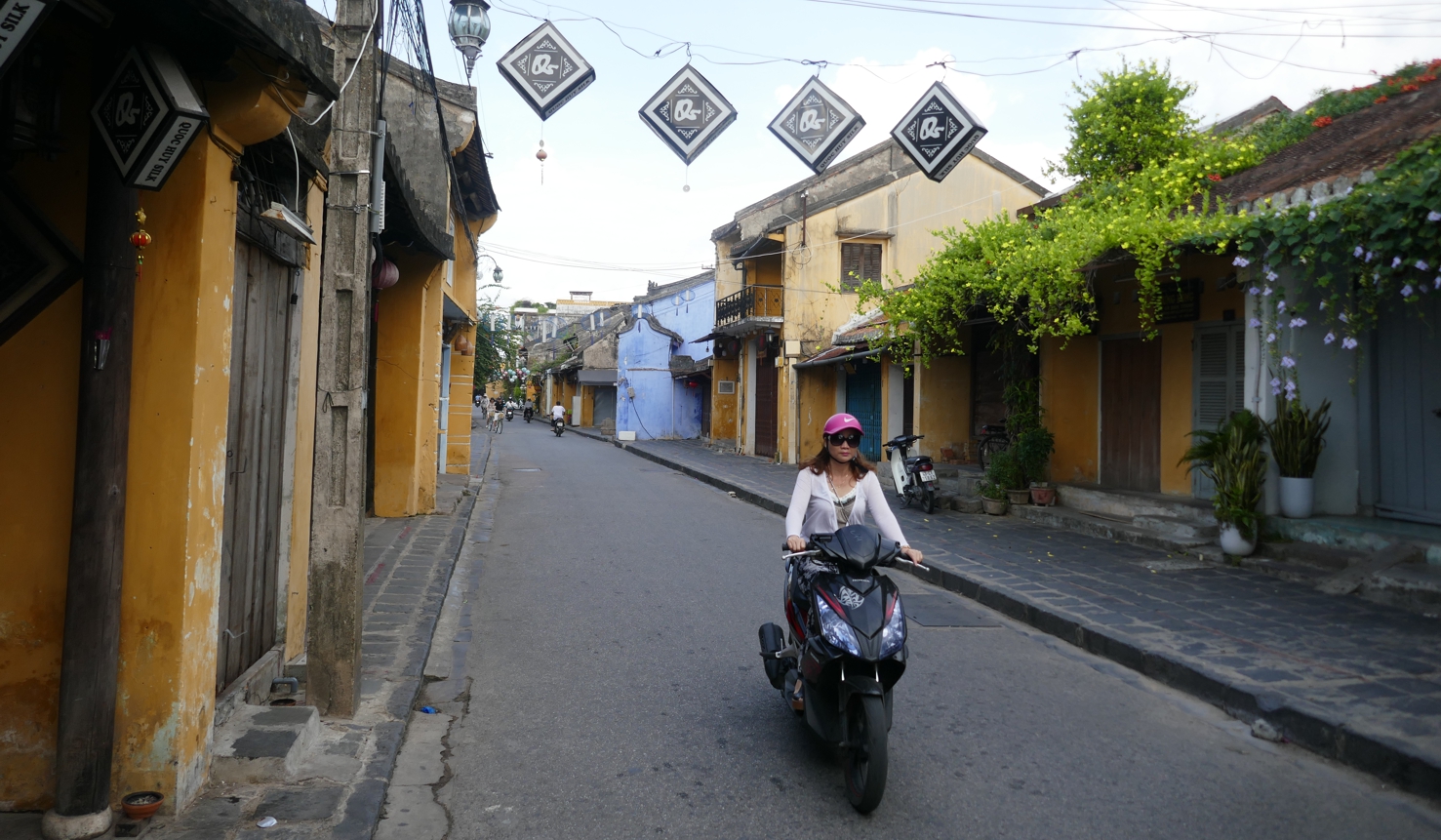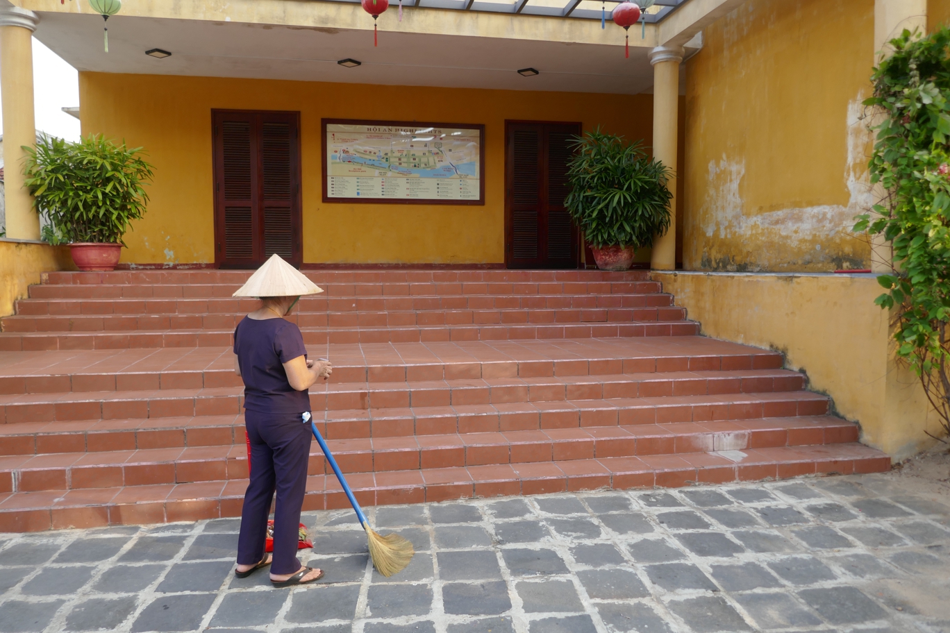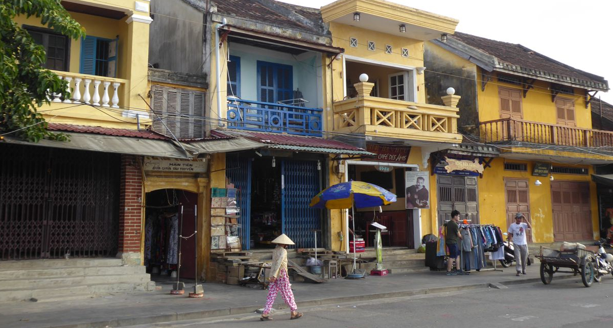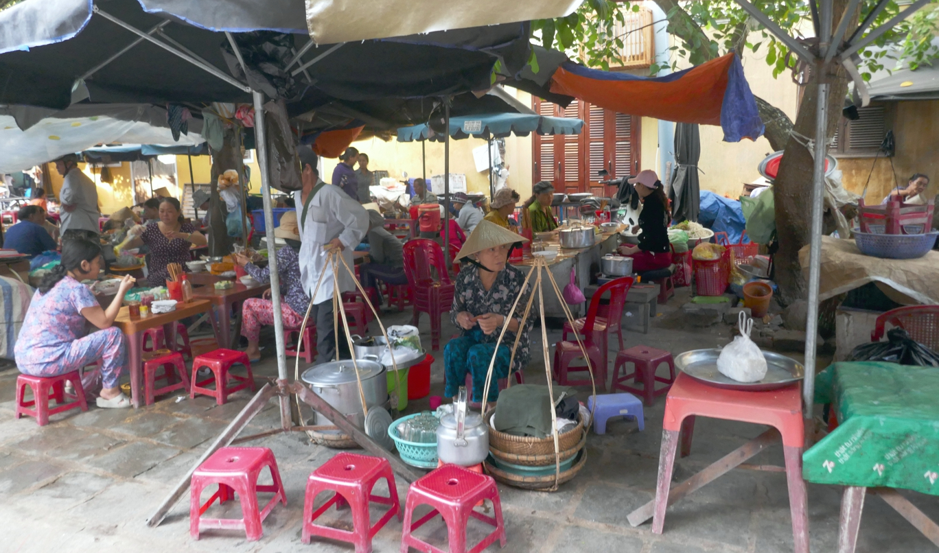 Frühmorgens aufstehen haben wir uns vorgenommen, wir wollen das so – wenigstens ein mal die Stadt erleben, wenn sie nicht die Atmosphäre eines großen Touristenshops in alten Gemäuern ausstrahlt. Am Abend war ja von einer der schönsten ältesten Städte Vietnams kaum etwas zu sehen außer einem Ladengeschäft an das andere gereiht, die Straßen vor allem mit Lampions hell und bunt beleuchtet, am Fluss der große Nachtmarkt, eine wilde Mischung aus Verkaufsständen mit allem erdenklichen Kram und Streetfood.