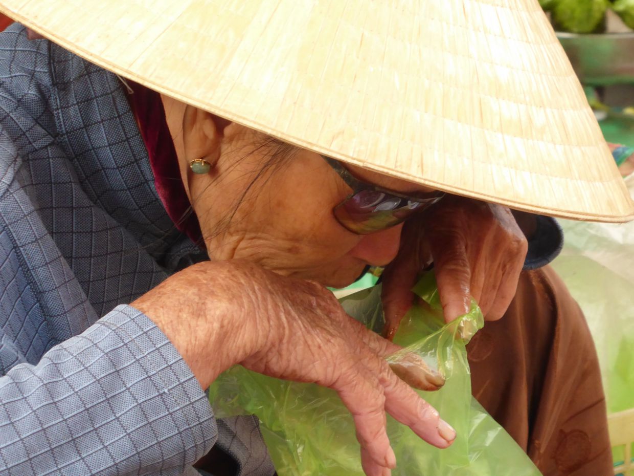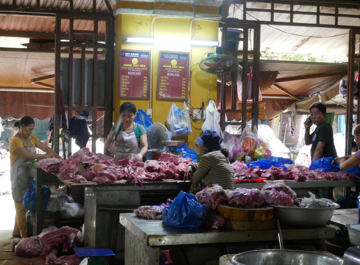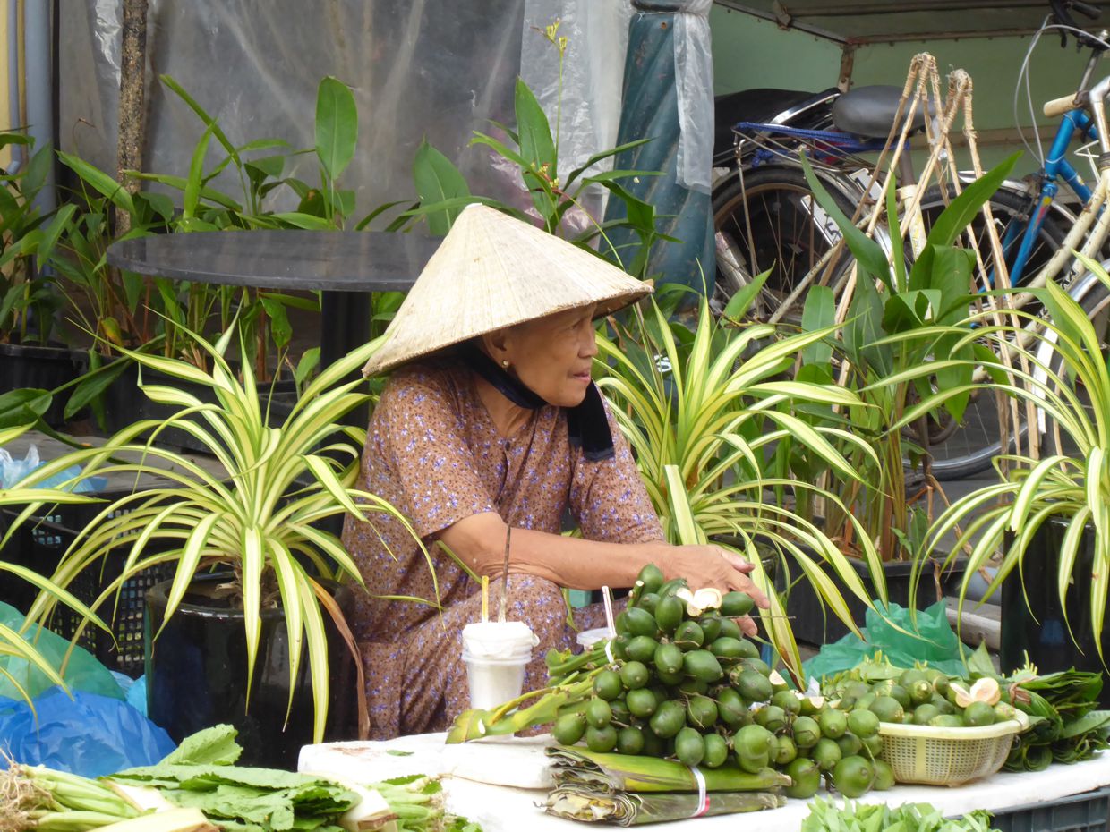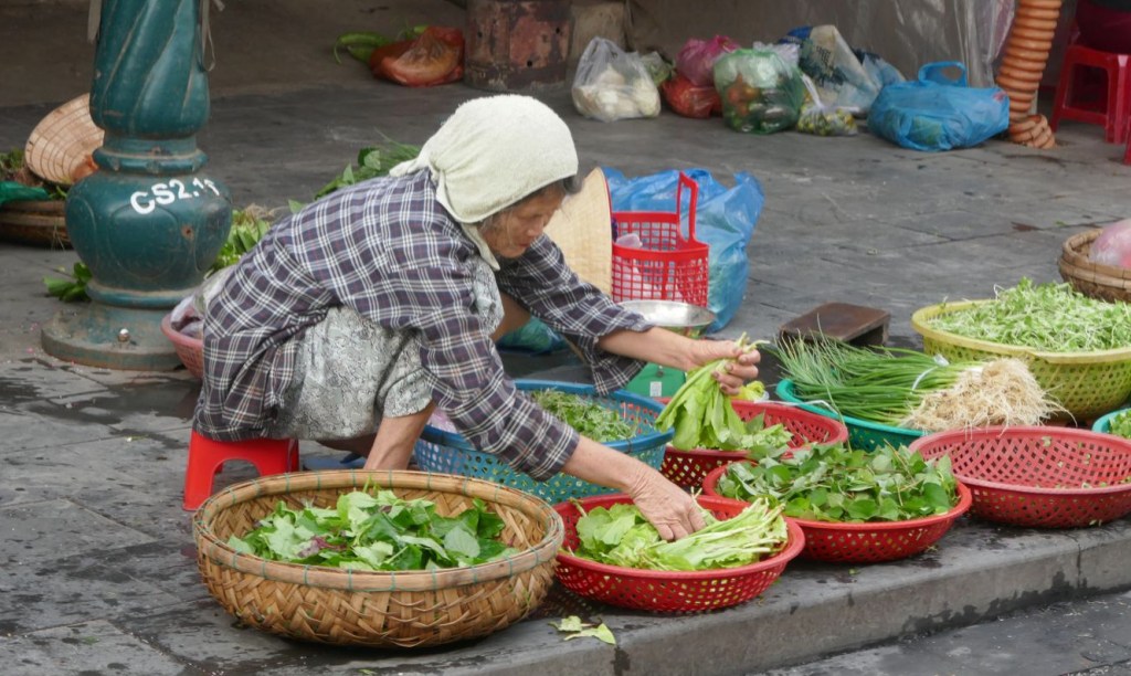 Die ersten beiden aktiven Stunden des Tages, von morgens sechs bis acht Uhr, gehört Hội An mehr den Einheimischen. Es ist die Zeit zum Verkaufen und Einkaufen. Unser Taxi bringt uns für den atemberaubenden Preis von 52.000 Dong in die Innenstadt.