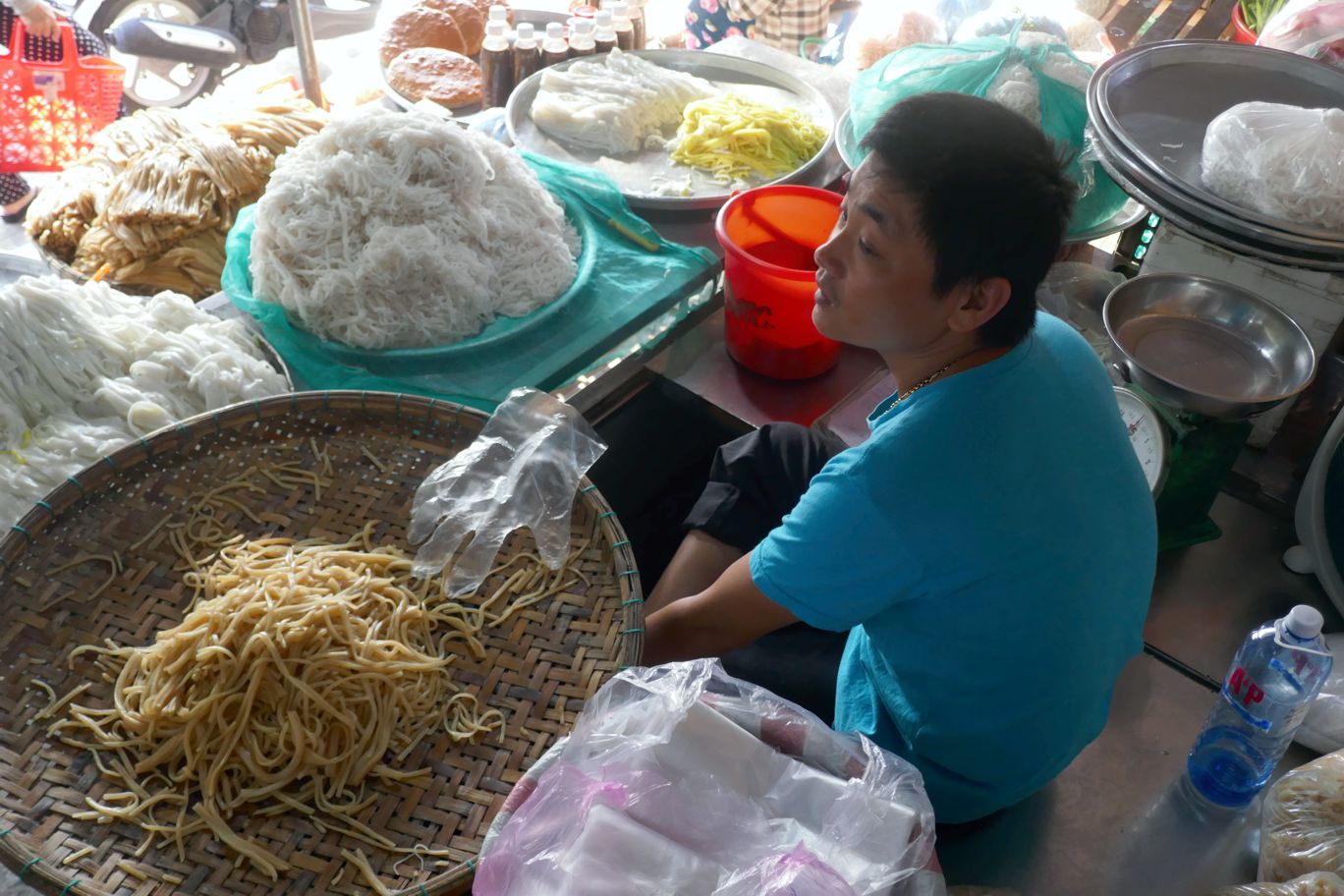 Entlang einer ganzen Marktstraße gibt es unterschiedlichste Varianten an Nudeln – eine ganze Straße lang Händler und vor allem Produzenten, die direkt am Stand Nudeln herstellten.