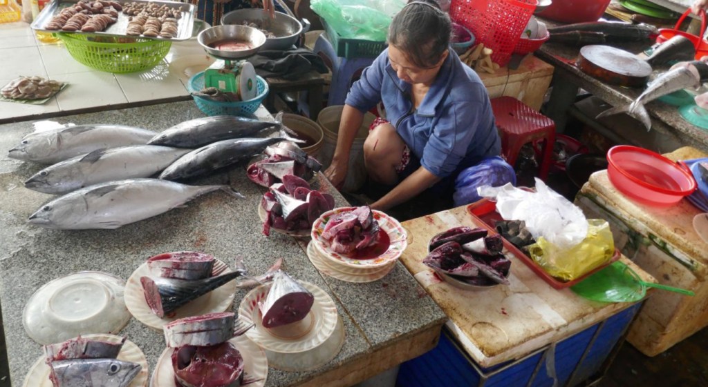 Später erfahren wir, dass der moderne Fischmarkt, der Umschlagplatz für alles ist, was in der Region gefangen wird, mittlerweile ziemlich weit außerhalb von Hội An liegt.