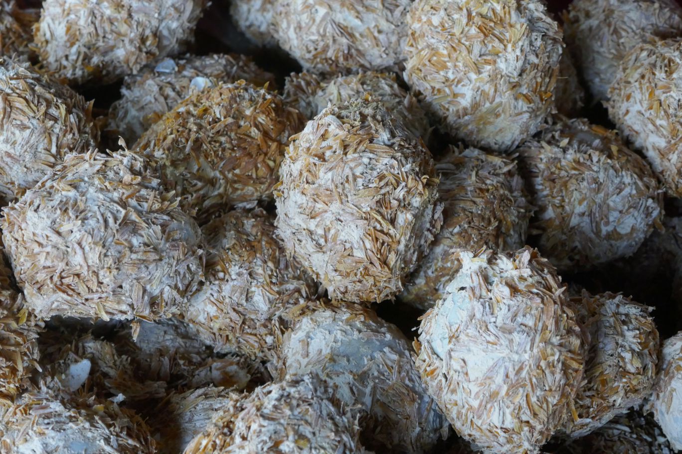 Es gibt Wachteleier und Hühnereier, und letztere nicht nur so, wie man sie bei uns kennt, sondern auch ummantelt mit Ton, mit Kräutern oder schwarz wie mit einer Kohleschicht; wird eines dieser Eier offen präsentiert, sieht man als glasig-dunklen Glibber, was einmal das Eiweiß war, und den grün-gelben Dotter.