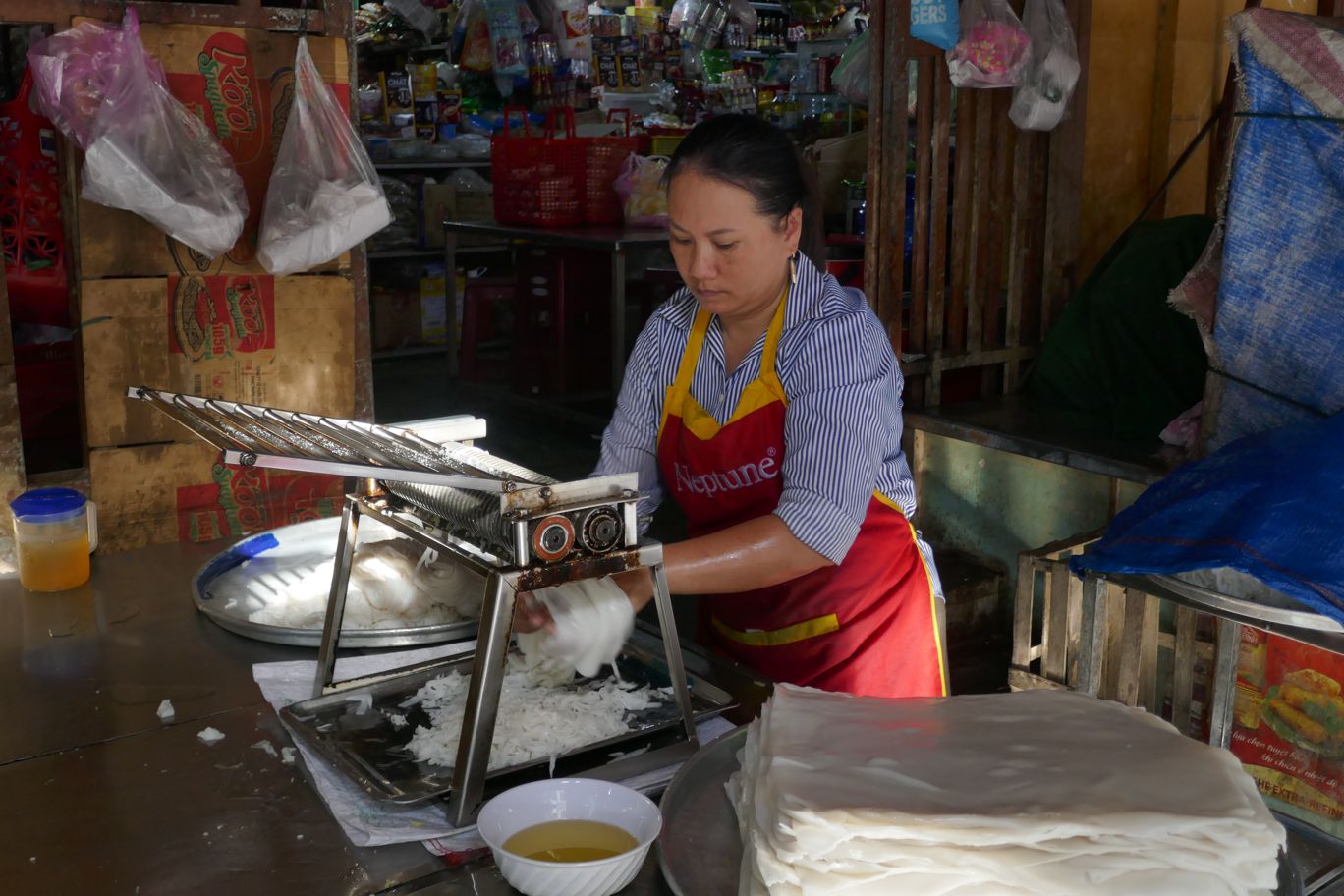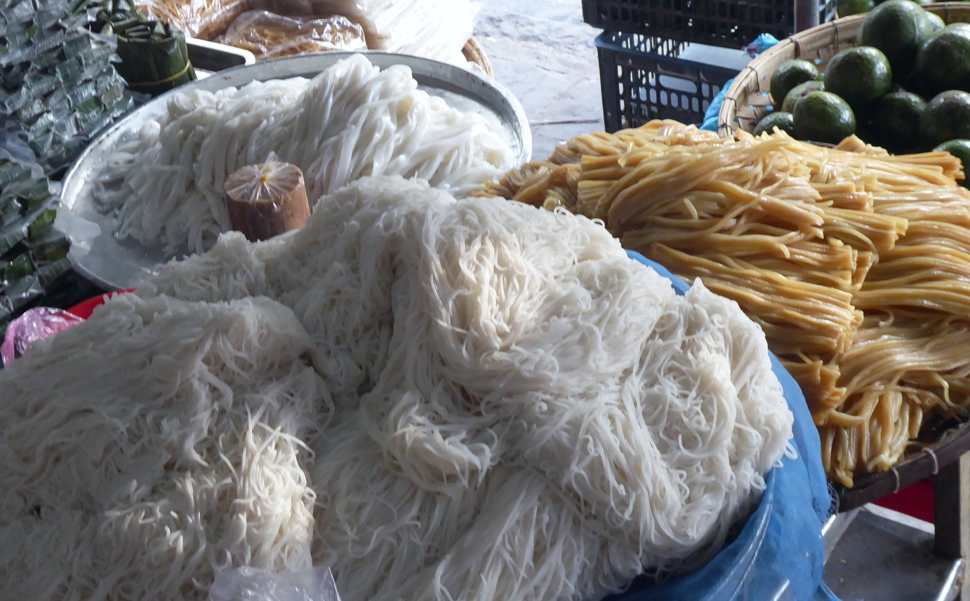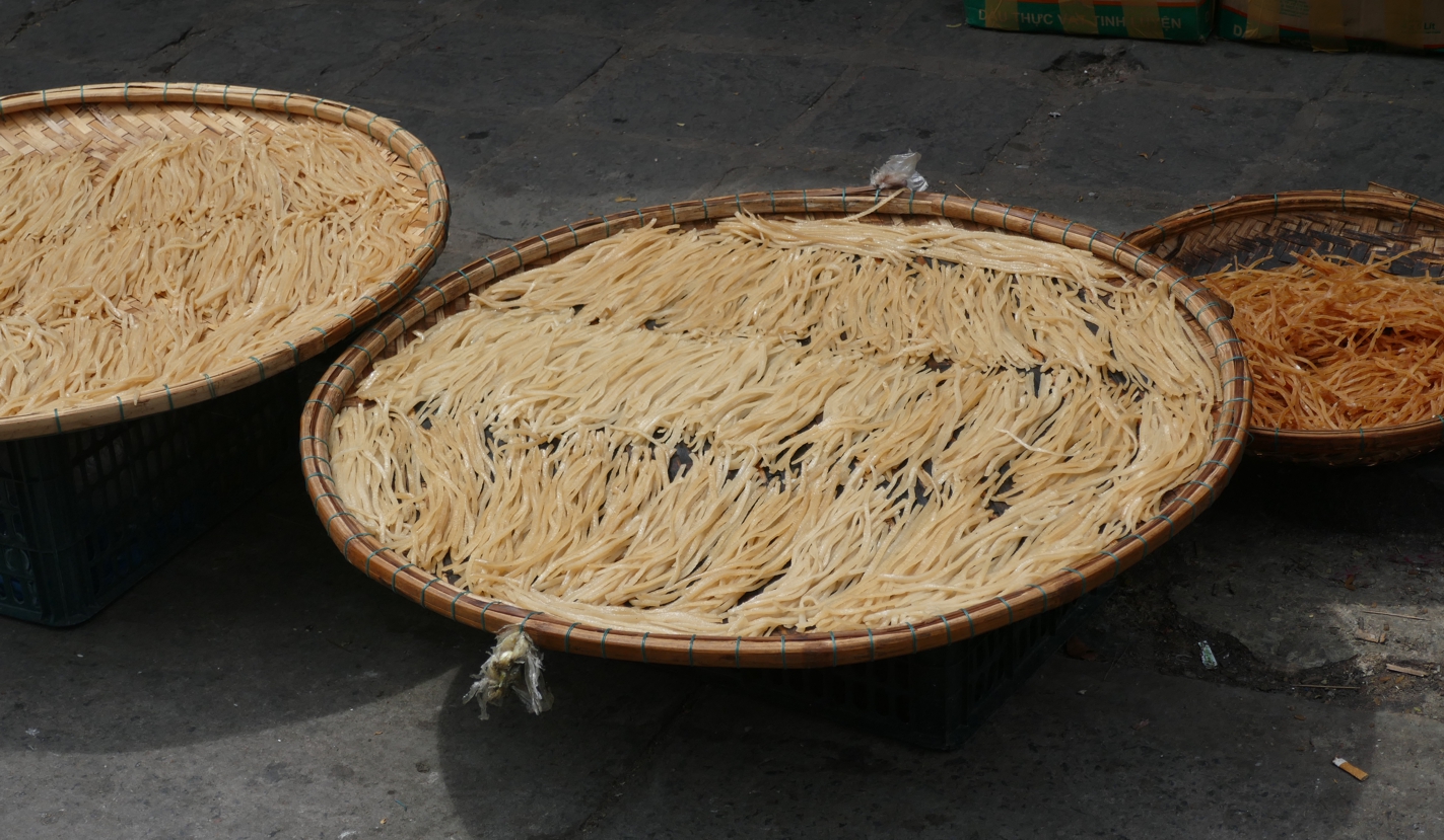 Hier gab es noch ein nettes kleines Erlebnis. Frage an eine Vietnamesin, die gerade Nudeln produzierte, ob man sie fotografieren dürfe; großes Desinteresse ihrerseits. Aber wir durften doch ein Bild machen.