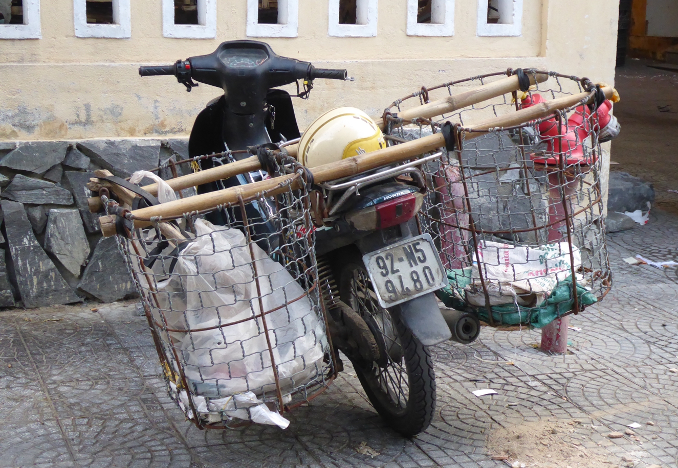 Wir staunen über die kreativen Aufbauten an Mopeds und die Anhänger, mit denen angeliefert wird – alle sind so gebaut, dass möglichst viel transportiert werden kann. Vor einem der Tempel wird noch die Straße gereinigt.
