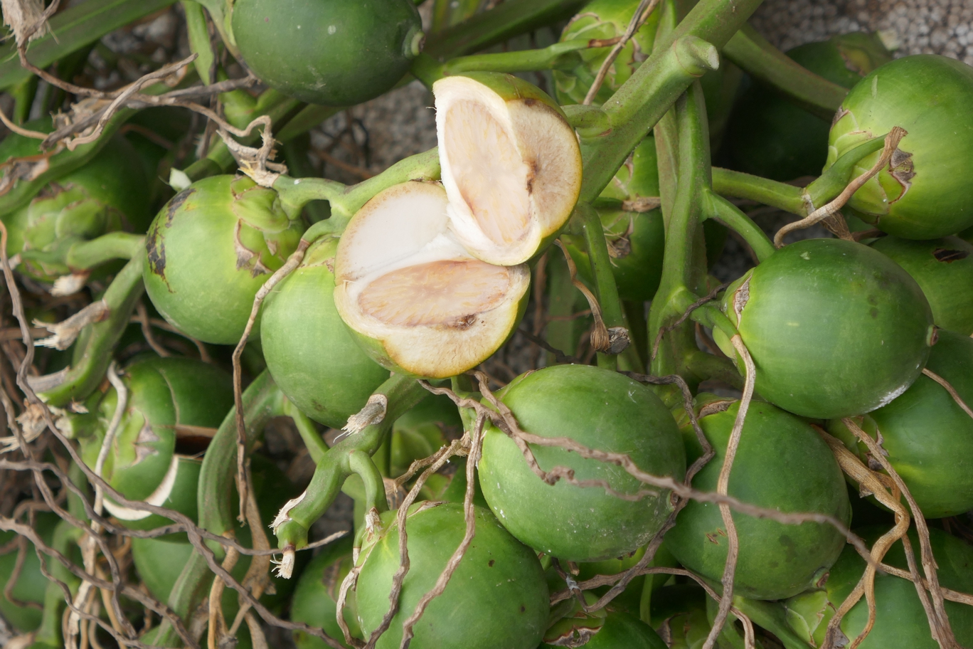 Dazwischen ist immer wieder einmal auch ein Stand mit den Bethelnüssen zu sehen; meist sind es ältere Leute, die diese verkaufen, mit knallrotem Mund, ebenso roten Zähnen, oder häufig dunkelbraun gefärbten Restzähnen, sofern überhaupt noch welche da sind, also typisch für diejenigen, die diese Nüsse nutzen.