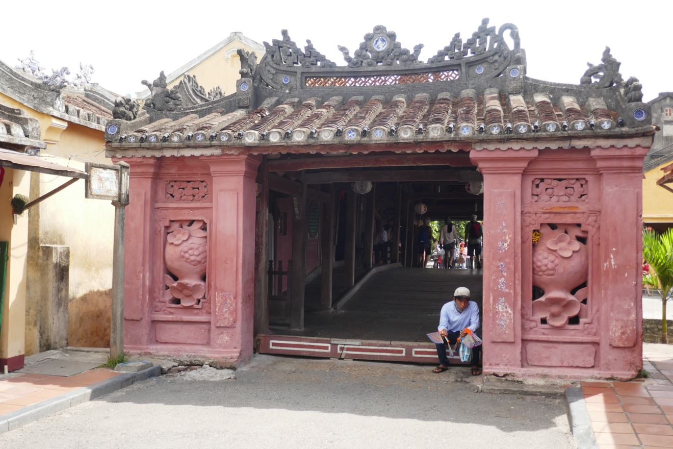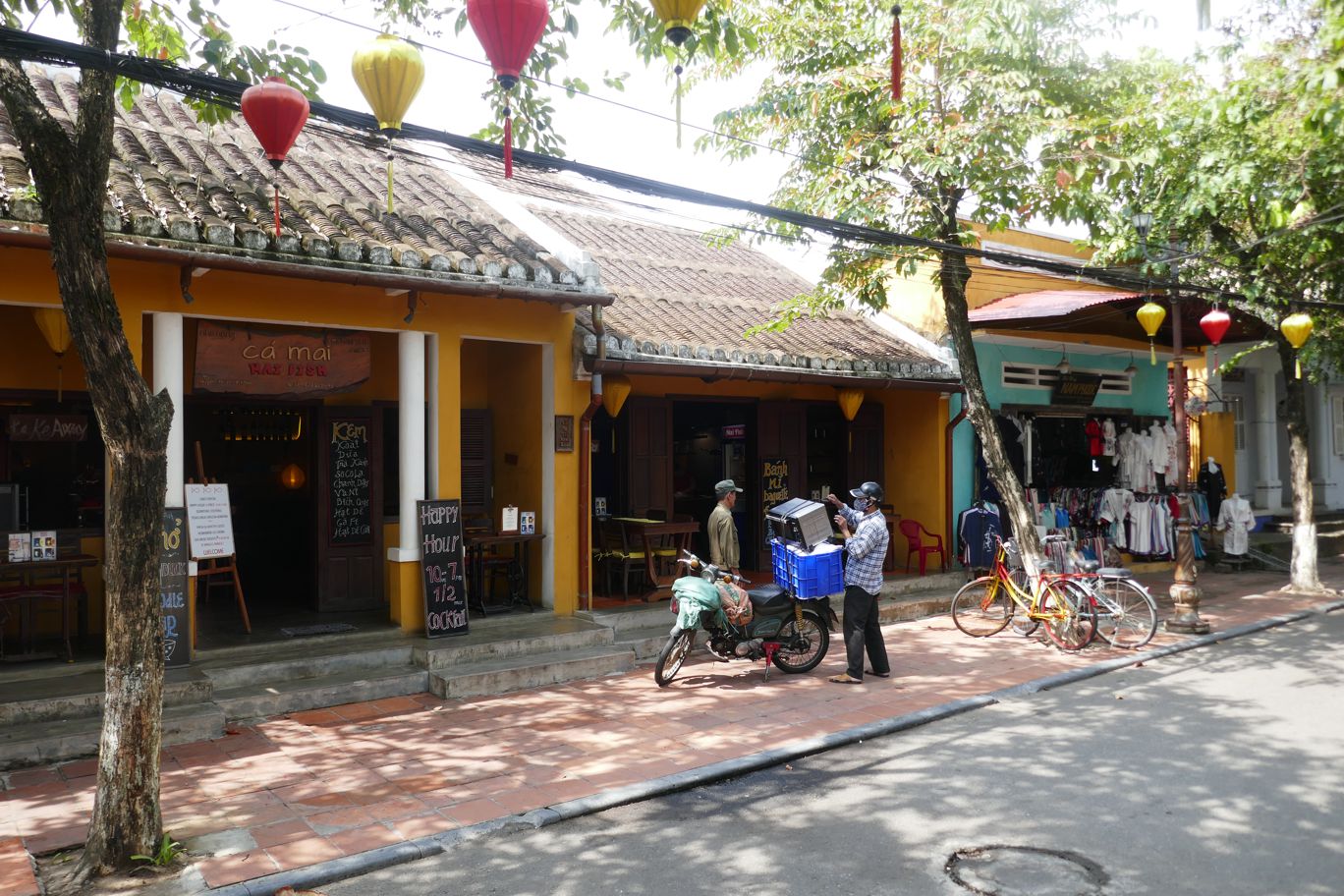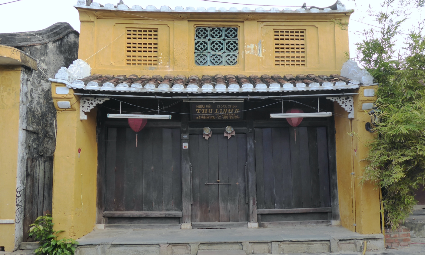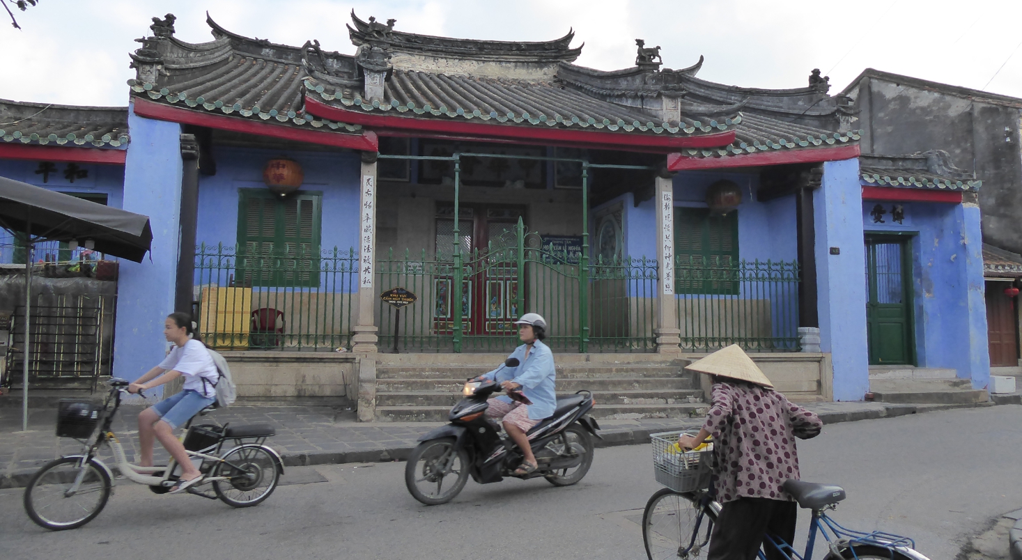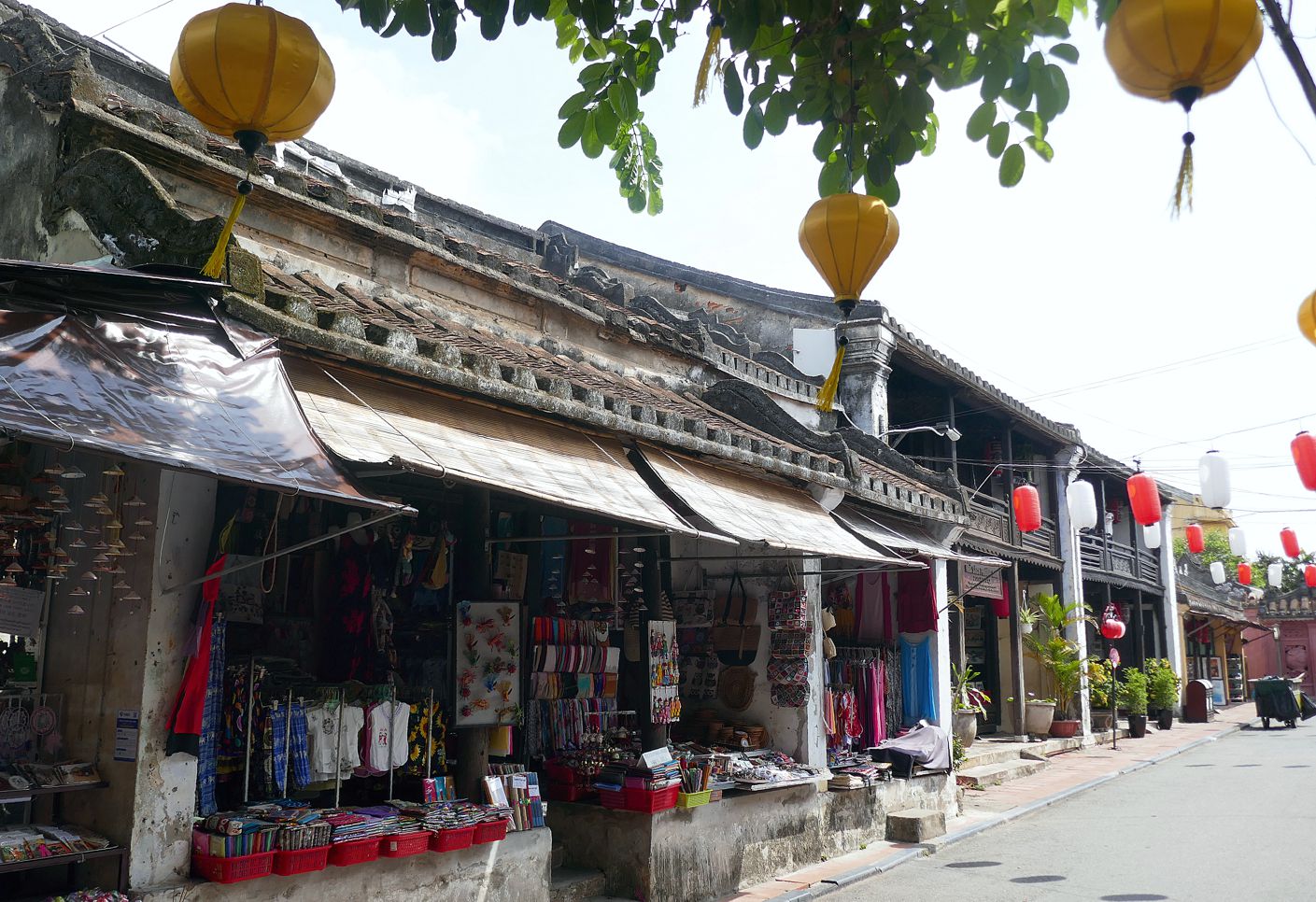 Für uns geht es weiter durch Hội An, vorbei an einigen alten Gebäuden. Von unserem Reiseleiter hören wir, dass Hội An im Vietnamkrieg ziemlich stark zerstört worden sei, von der Altstadt nur noch wenig erhalten war, aber die alten Häuser mit Unterstützung der UNESCO wieder aufgebaut wurden. Jetzt sei die Zeit, in der viele davenoviert werden müssten; vor allem die Dächer seien neu zu machen – einige stehen allerdings noch wie in vergangenen Zeiten.