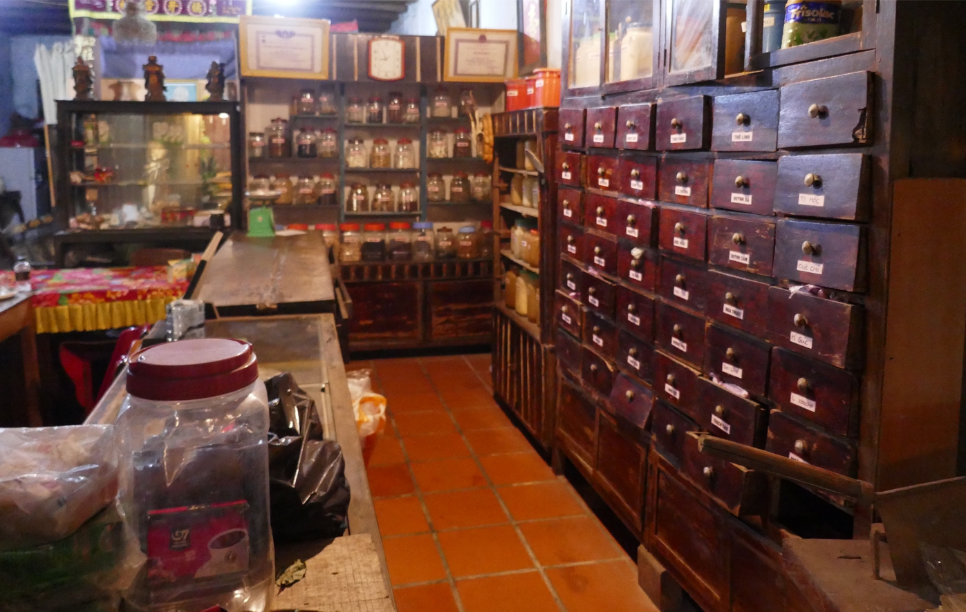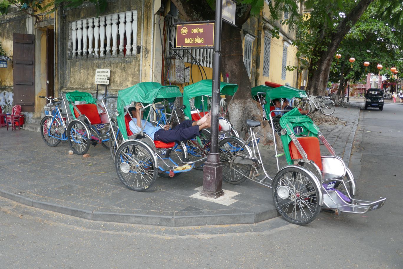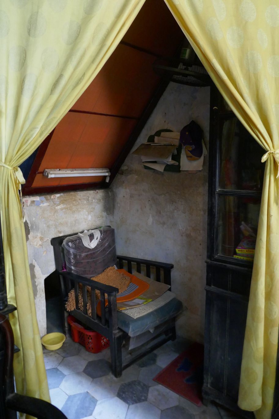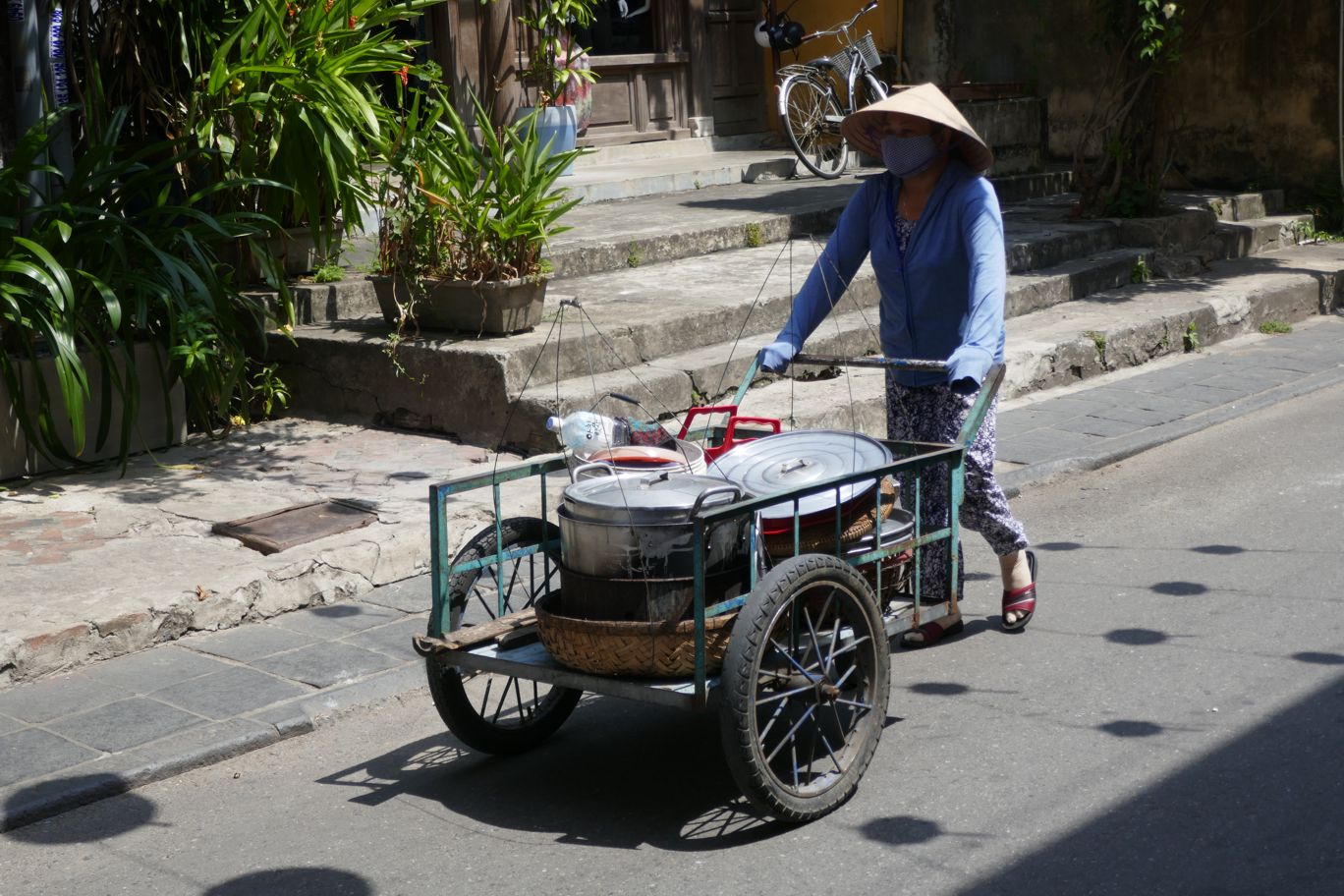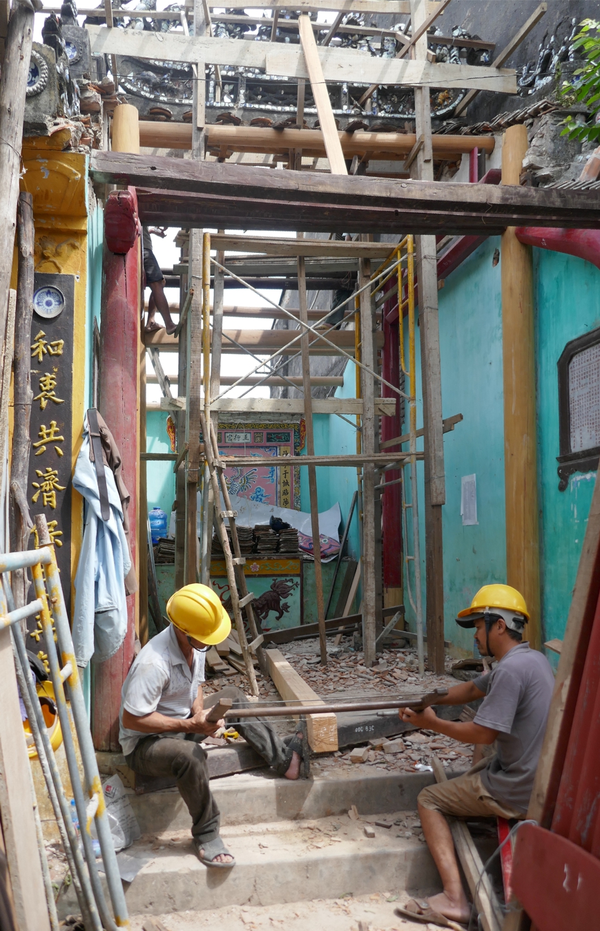Für uns geht es weiter durch Hội An, vorbei an einigen alten Gebäuden. Von unserem Reiseleiter hören wir, dass Hội An im Vietnamkrieg ziemlich stark zerstört worden sei, von der Altstadt nur noch wenig erhalten war, aber die alten Häuser mit Unterstützung der UNESCO wieder aufgebaut wurden. Jetzt sei die Zeit, in der viele davenoviert werden müssten; vor allem die Dächer seien neu zu machen – einige stehen allerdings noch wie in vergangenen Zeiten.
