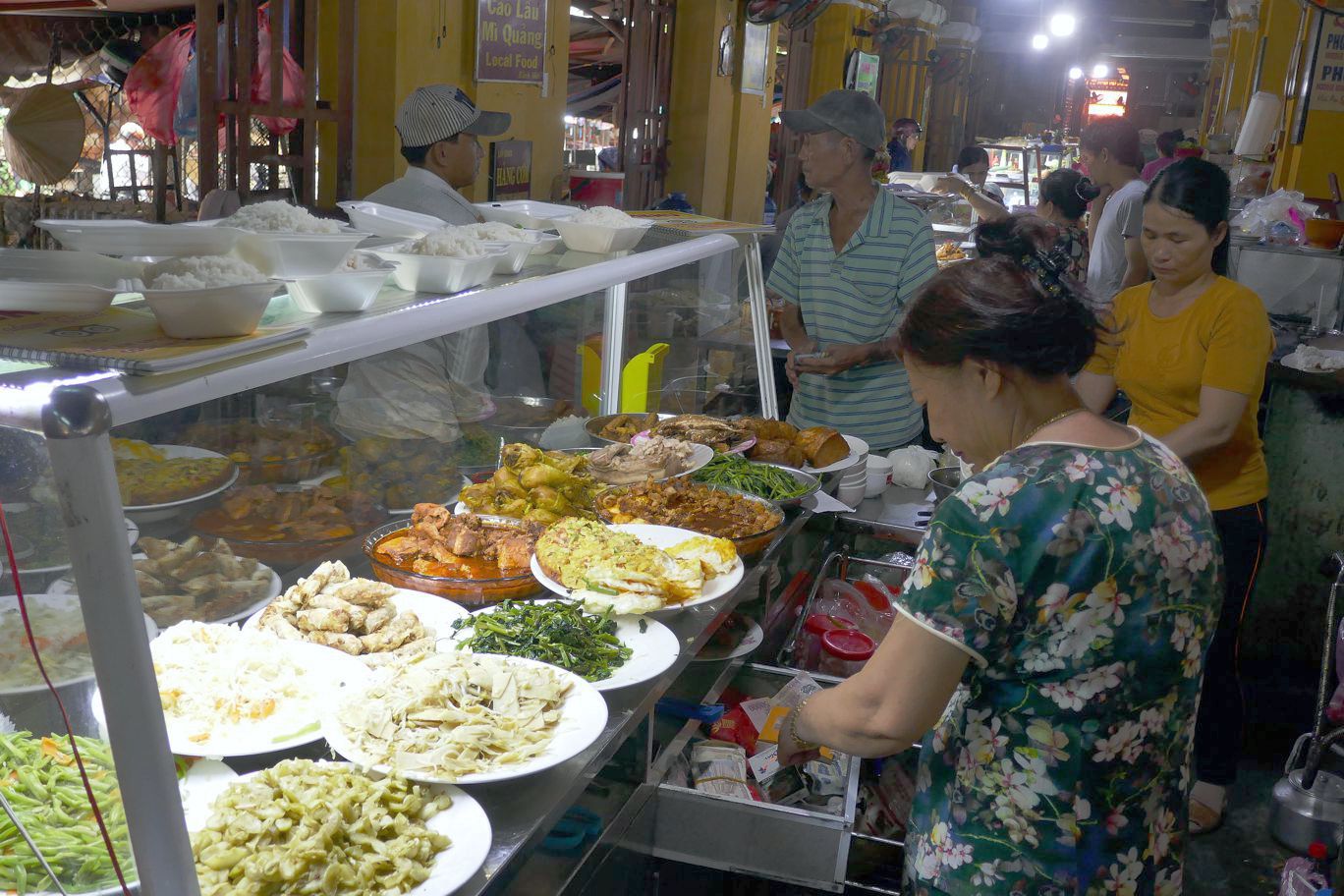 Der Weg führt uns nochmals zum Markt, der inzwischen weit weniger auf die Einheimischen ausgerichtet ist, sondern weit mehr auf die herumschlendernden Touristen. Die vielen Obst- und Gemüsestände sind ebenso wie die Fisch- und Fleischauslagen weitgehend verschwunden. Im zentralen Bereich der Markthalle wird gekocht, verkauft und gegessen.