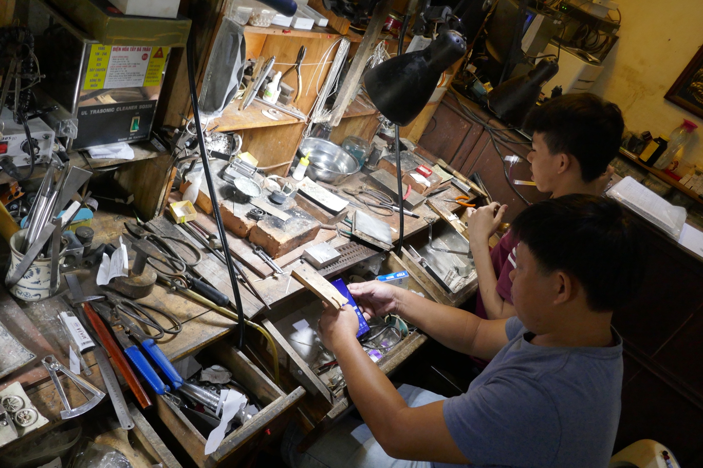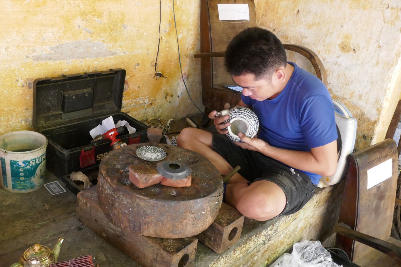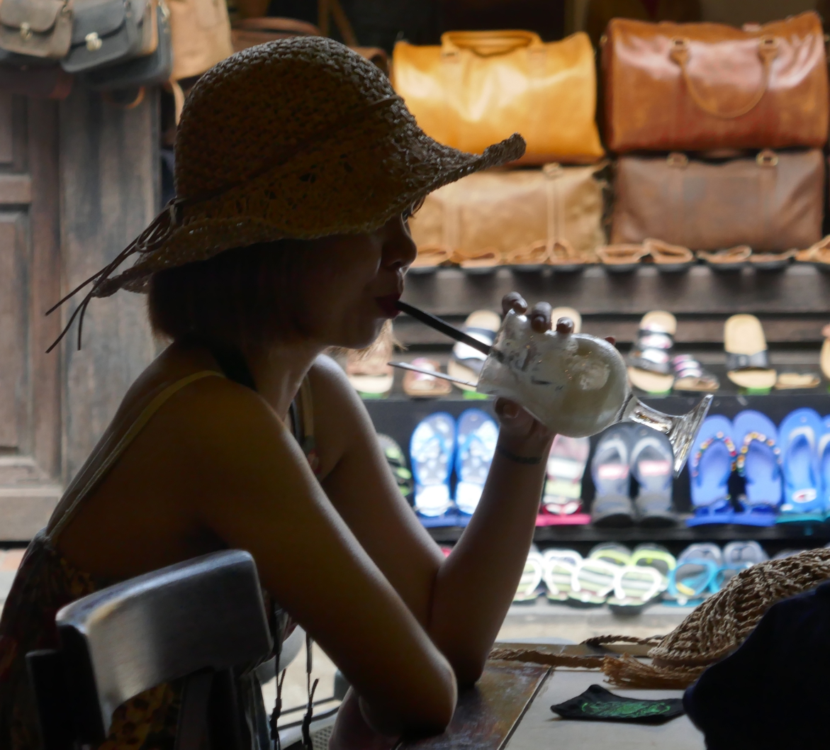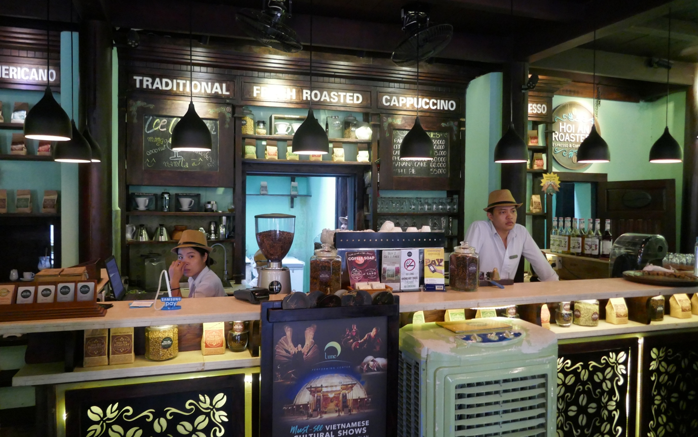 Es wird verkauft; in kleinen Werkstätten werden Gegenstände hergestellt und verziert. Für uns ist Kaffeepause angesagt, in einer Kaffeebar mitten im Quartier.