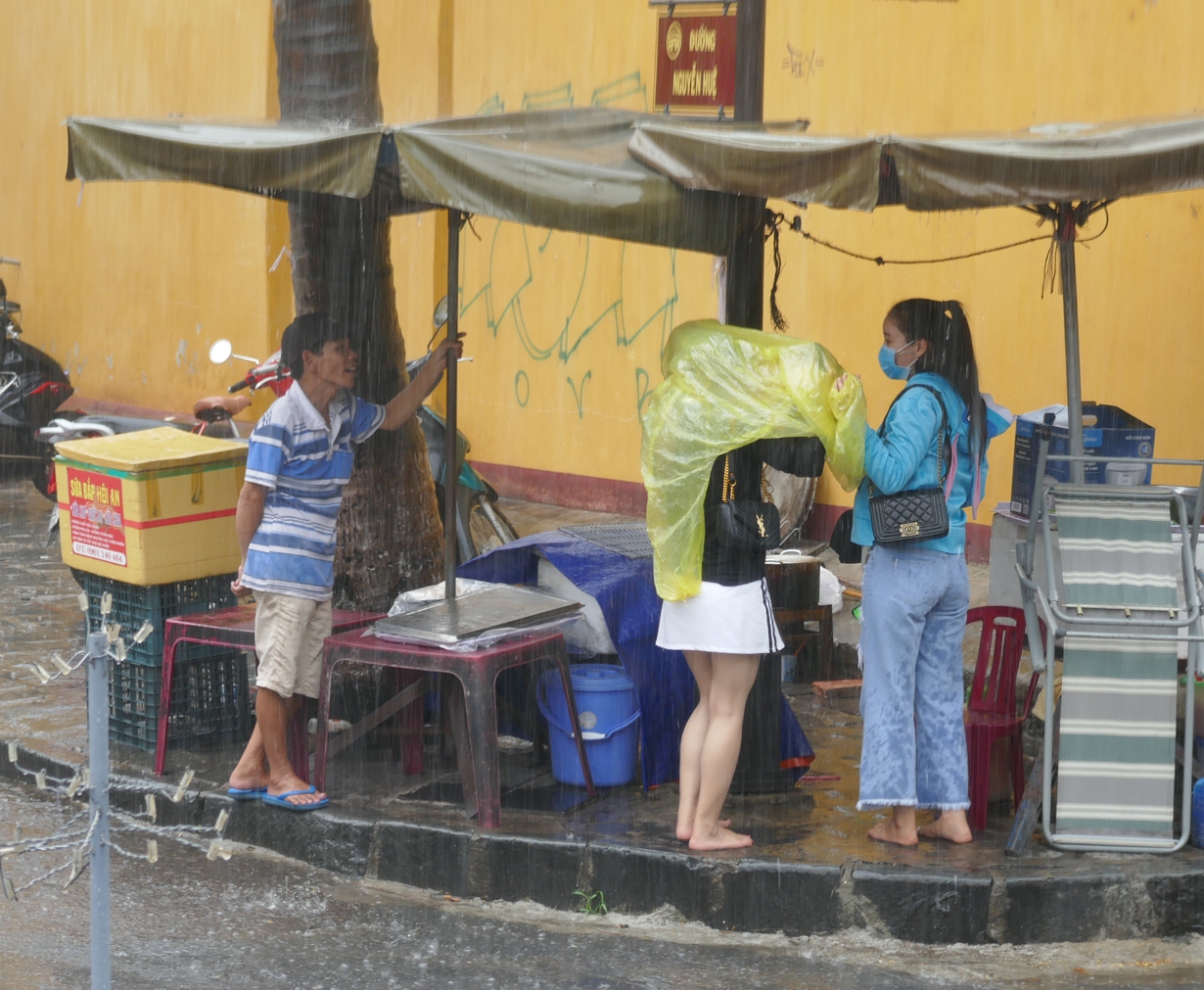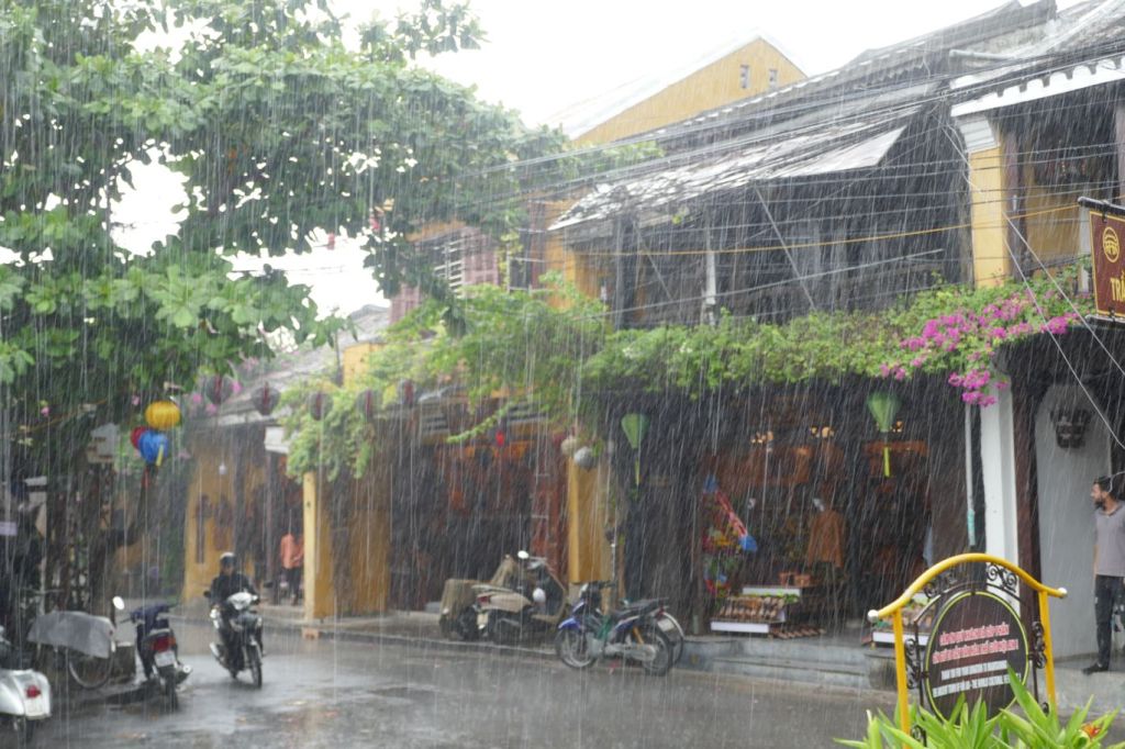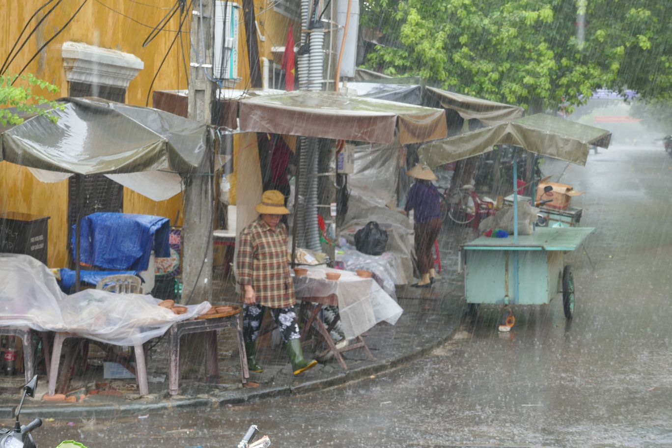 Mittagszeit – unser vietnamesischer Reiseleiter hat für uns alle ein Mittagessen geplant. Aus heiterem Himmel gibt es plötzlich einen Platschregen, als wären wir noch mitten in der Regenzeit.