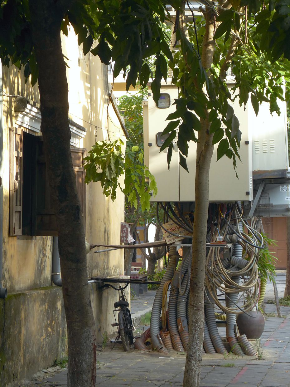 Immer wieder begeistern uns die Versorgungsleitungen über den Straßen und auf den Fußgängerwegen, immer ein recht kreatives Kabelgewirr, oft direkt an Trafostationen am Straßenrand und mit Kabelenden, die einfach auch mal ziellos von den Masten hängen – aber alles scheint wie gewünscht zu funktionieren.