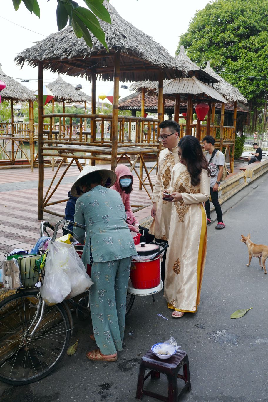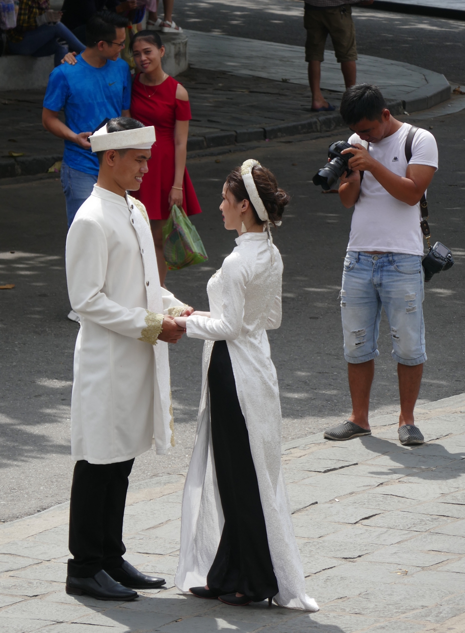 In diesem Stadtviertel direkt am Fluss fallen auch die vielen Hochzeitspaare auf, die sich festlich gekleidet zum Fototermin eingefunden haben.