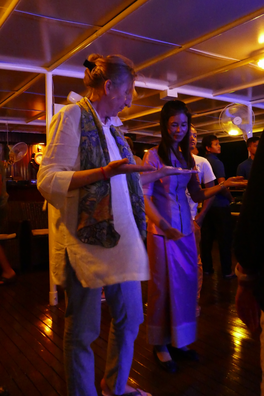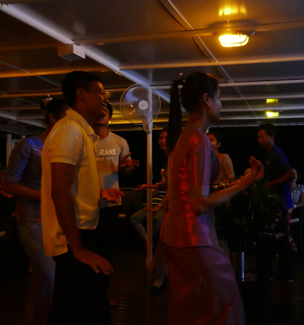 Auffallend gut ist die Stimmung auf der Lan Diep, von Beginn der Fahrt auf dem Mekong bis zum Ende der Schiffsreise, vor Siem Reap. Das zeigt sich auch noch einmal bei der Abschiedsfeier auf dem Tonle Sap See, bei der Crew und Passagiere gemeinsam bis in die späte Nacht hinein feiern.