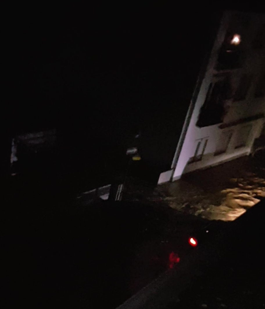 Längst ist der Strom ausgefallen, auch aus dem Wasserhahn kommt nichts mehr. Wir machen uns auf die Suche nach Kerzen und Taschenlampen. Im Nachbarhaus gegenüber, das deutlich niedriger als unser Haus ist, ist das Erdgeschoss weitgehend unter Wasser; die Bewohner schauen aus den Dachgauben im Dachgeschoss zu, wie alles um sie herum im Wasser verschwindet, ihre Garage sich in Einzelteile zerlegt und wegschwimmt – und gleich so unglücklich, dass das Dach den Hauseingang eines Nachbarhauses komplett verschließt.