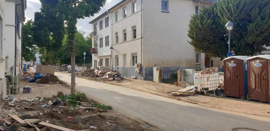 Erst später wird realisiert werden, dass es eben nicht nur um Sachwerte geht, sondern um Menschen, die hier gelebt haben und weiterleben werden, mit Erinnerungen an die Flutkatastrophe und an die Vielen, die fehlen werden, Familienangehörige, Freunde, Nachbarn …