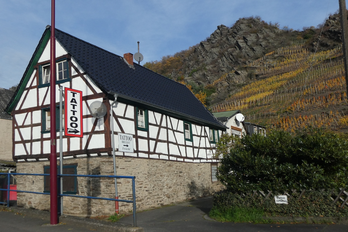 Viele der kleinen Orte am Fluss waren längst keine Vorzeigeobjekte mehr. Entlang der Uferstraße dominierten geschlossene Gaststätten und Pensionen; halten konnten sich anscheinend vor allem Nail- und Tattoo-Studios und Pizza-Lieferdienste. Viele Hotels entlang der Ahr – Leerstände und auch schon vor der Flut zum Verkauf stehend.
