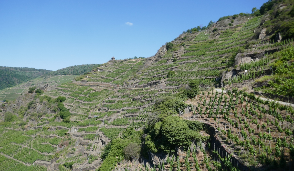 Unübersehbar sind zum Beispiel die Rebflächen, bei denen im Rahmen von Flurbereinigungen in den letzten Jahrzehnten die Weinterrassen durch unorganische steile Abhänge, die weit weniger Niederschläge aufnehmen können und den direkten Weg des Wassers hinunter ins Tal abhalten könnten, ersetzt wurden.