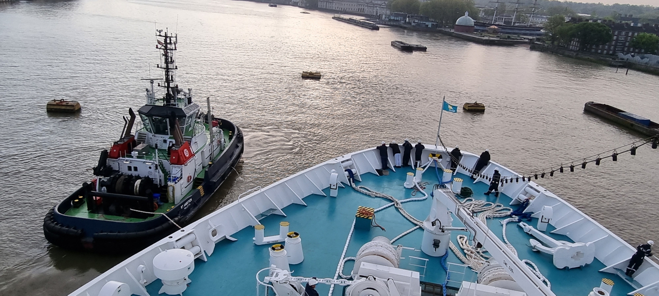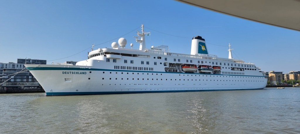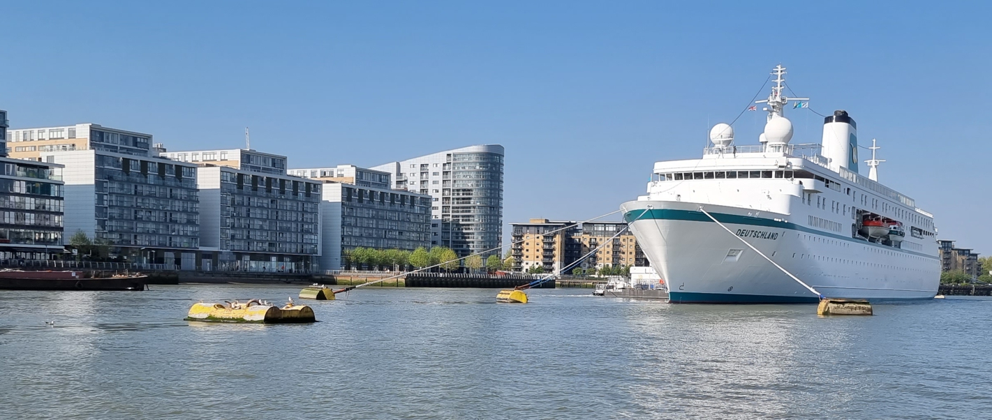 Mit der MS Deutschland geht es von Bremerhaven aus zum ersten Ziel, nach Greenwich, dem Stadtteil von London. Nach einem Seetag über die Nordsee geht es am frühen Morgen auf Flusskreuzfahrt, die Themse hinauf, unterstützt von Schleppern.