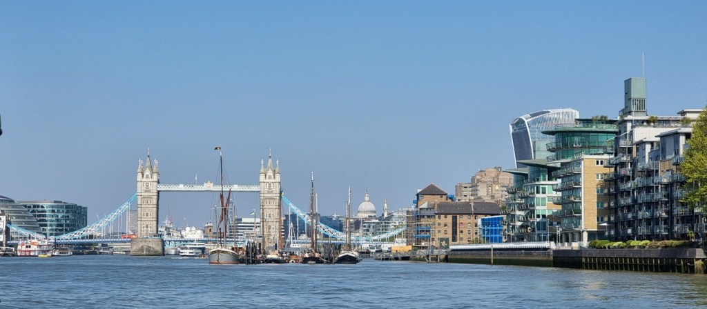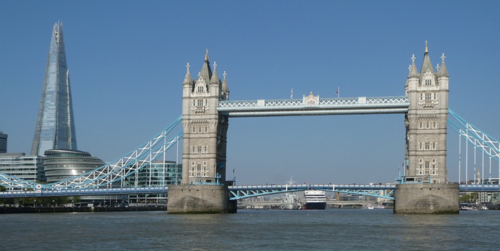 Dann liegt die Tower Bridge vor uns. Eigentlich hat man erst jetzt das Gefühl, in London angekommen zu sein, der eher altehrwürdigen und zugleich zu den modernsten und teuersten Metropolen der Welt gehörenden Hauptstadt des eigenwilligen Landes, das Kontraste und Gegensätze pflegt, und dabei auch versteht, eine der ältesten Demokratien mit einer Monarchie zu kombinieren.