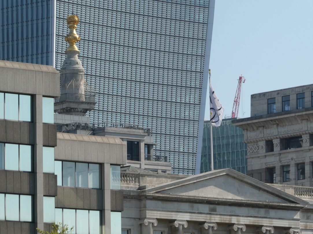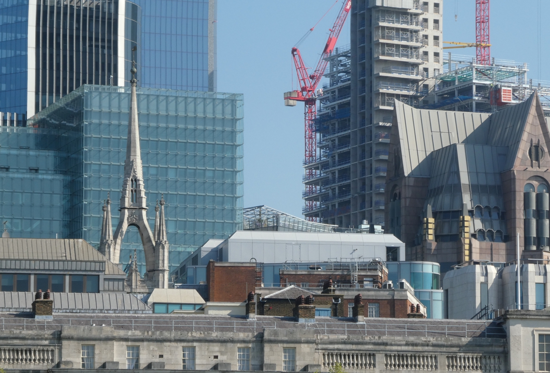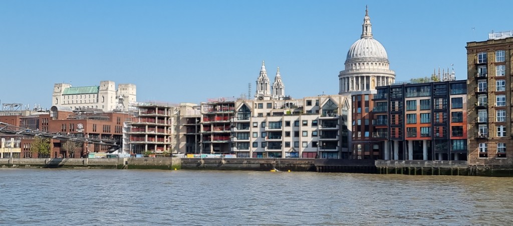 Fast schon verschwindend zwischen all den Bauwerken die Saint Paul´s Cathedral, von der von Themse aus nur noch wenig zu sehen ist.