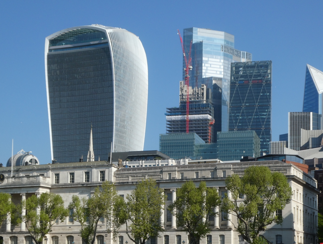 Dominanter und in ihren Formen beeindruckend sind die Hochhäuser, selten in einfacher Bauweise erstellt, eher in geschwungenen Linien, oder als senkrecht stehende Form, nicht nur an eine Gurke, auch an eine Zigarre erinnernd, oder als extrem in die Höhe verzogene Pyramide erstellt, auf dem Gelände einer ehemaligen Werft wie angestrandete Schiffe aussehend, dann an anderer Stelle ein überdimensionaler Golfball, oder auch als stufenförmiges Gebäude.