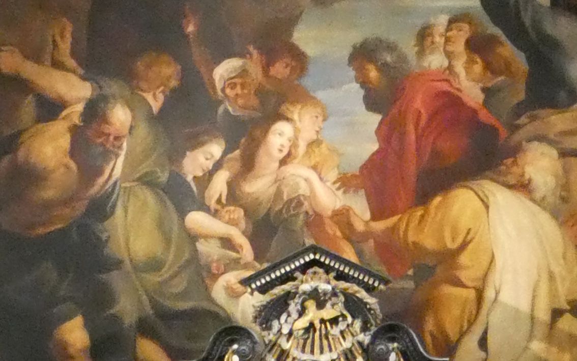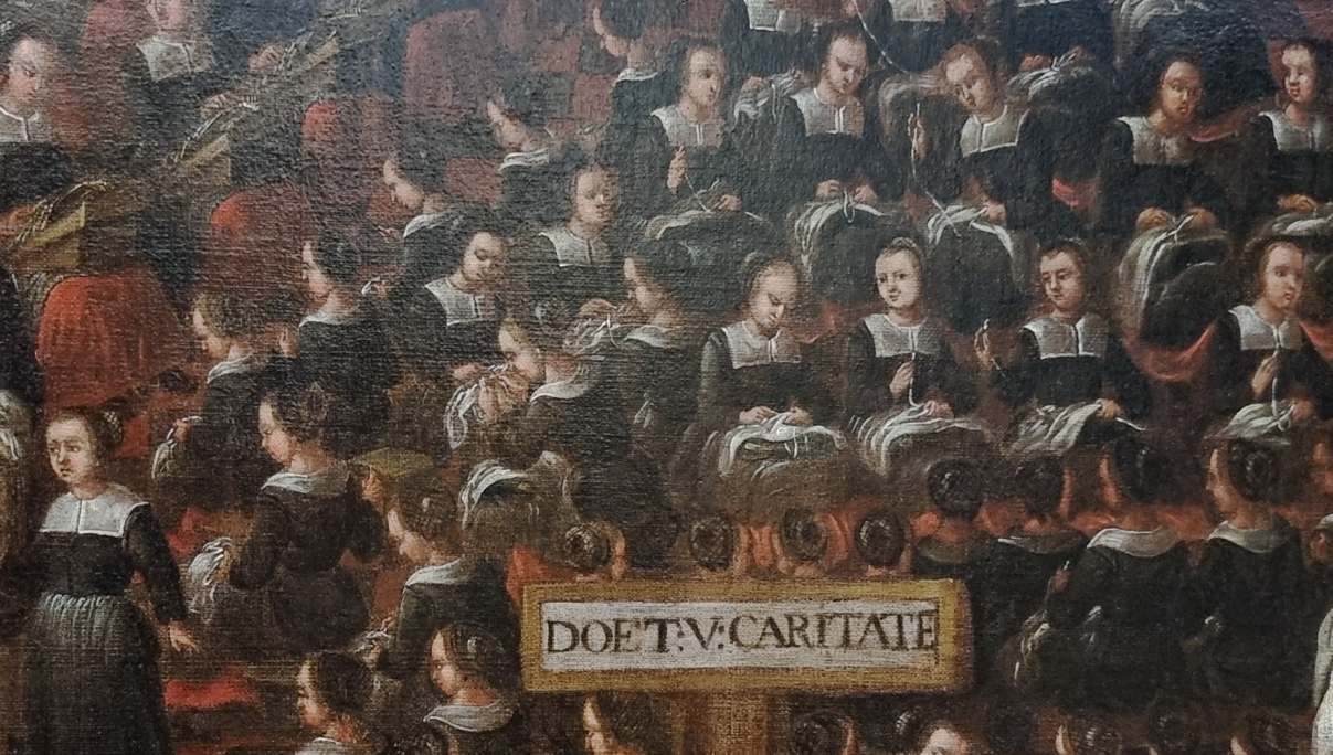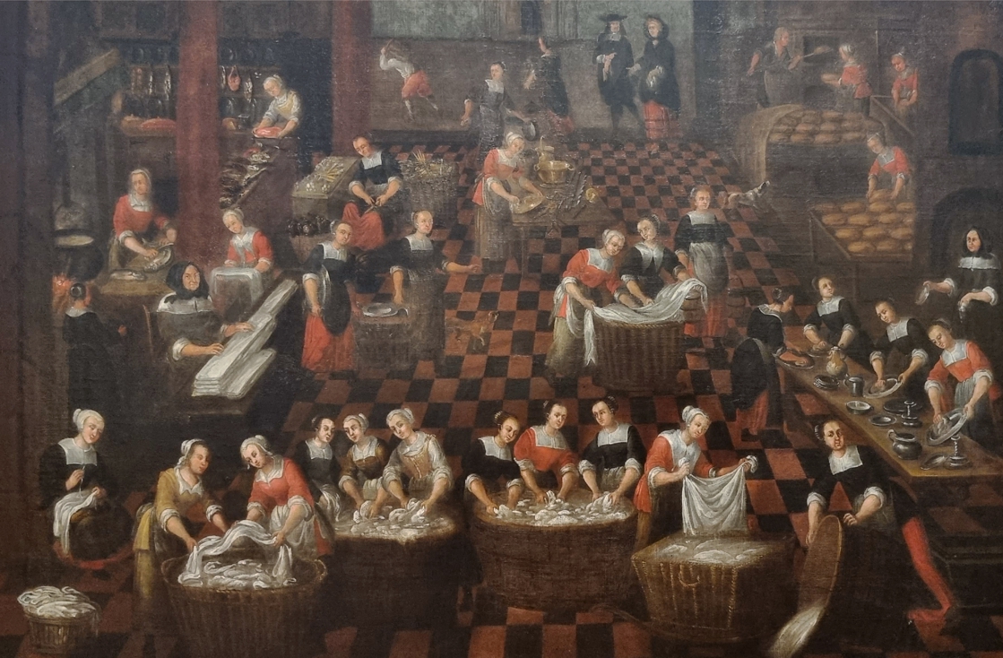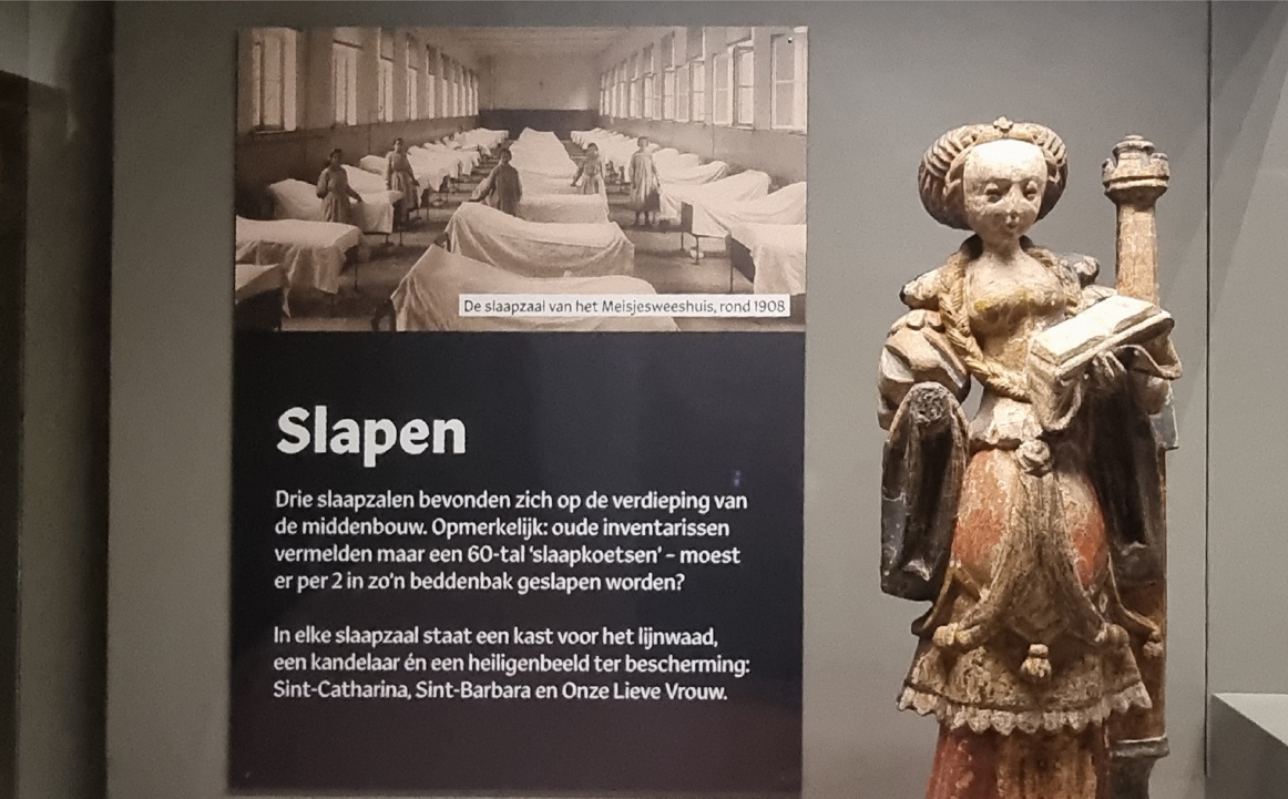 Von der ursprünglichen Ausstattung der Anlage ist kaum etwas erhalten; von dieser ist eher etwas zu erahnen anhand der Gemälde und weniger ausgestellter Fotos aus dem beginnenden 20. Jahrhundert. Aber eines ist sicher: Auch im Waisenhaus zeigt sich, dass die Region vom 15. bis zum 18. Jahrhundert geradezu kunstversessen gewesen sein muss. Egal wo man hinkommt, Gemälde, möglichst großflächige. Wie überall, wo wir hinkamen, ob Kirchen, öffentliche Gebäude, Museen, sogar in Restaurants, es ist ein geradezu überbordendes Angebot. Selbst in diesem Waisenhaus, das sich den Armen, nicht der großen Kunst verschrieben hat, wurden Gemälde in Auftrag gegeben, die mehr oder weniger realistisch das Alltagsleben im Waisenhaus darstellen, und es wurde ergänzend gesammelt – und so hängen hier auch Kunstwerke zum Beispiel von Rubens oder van Dyck .