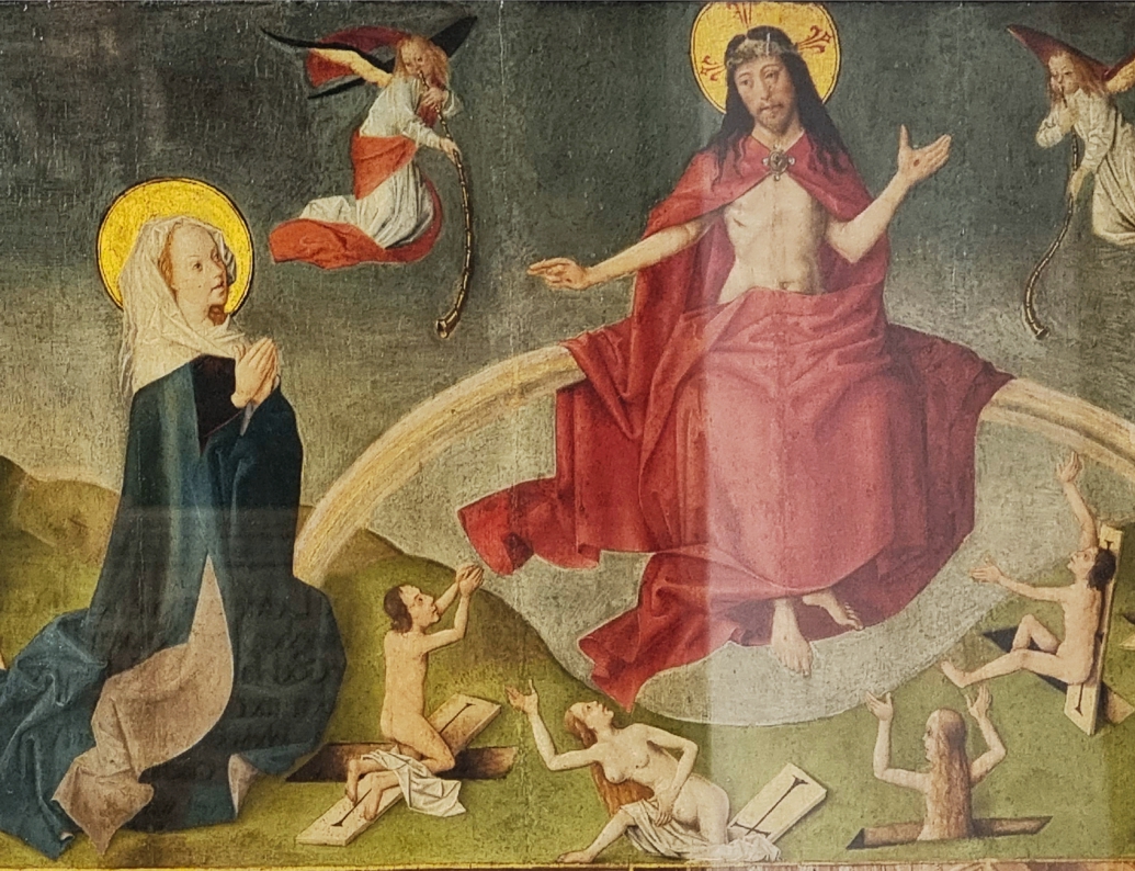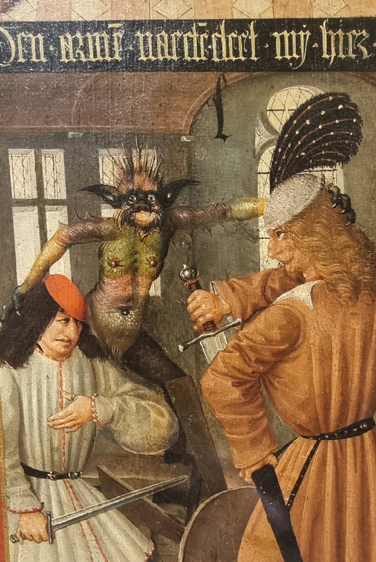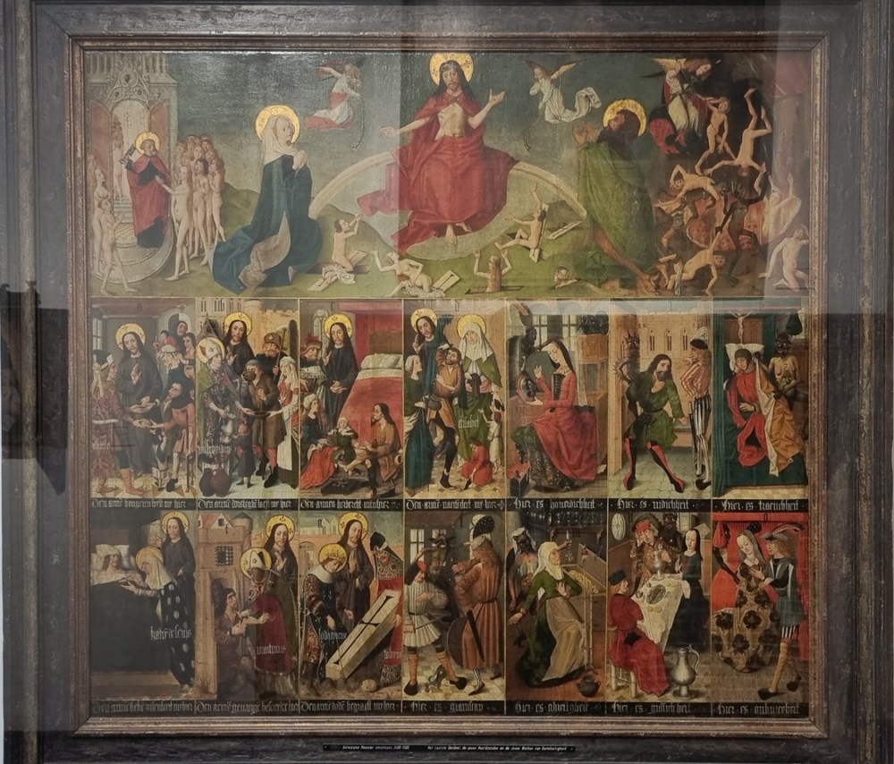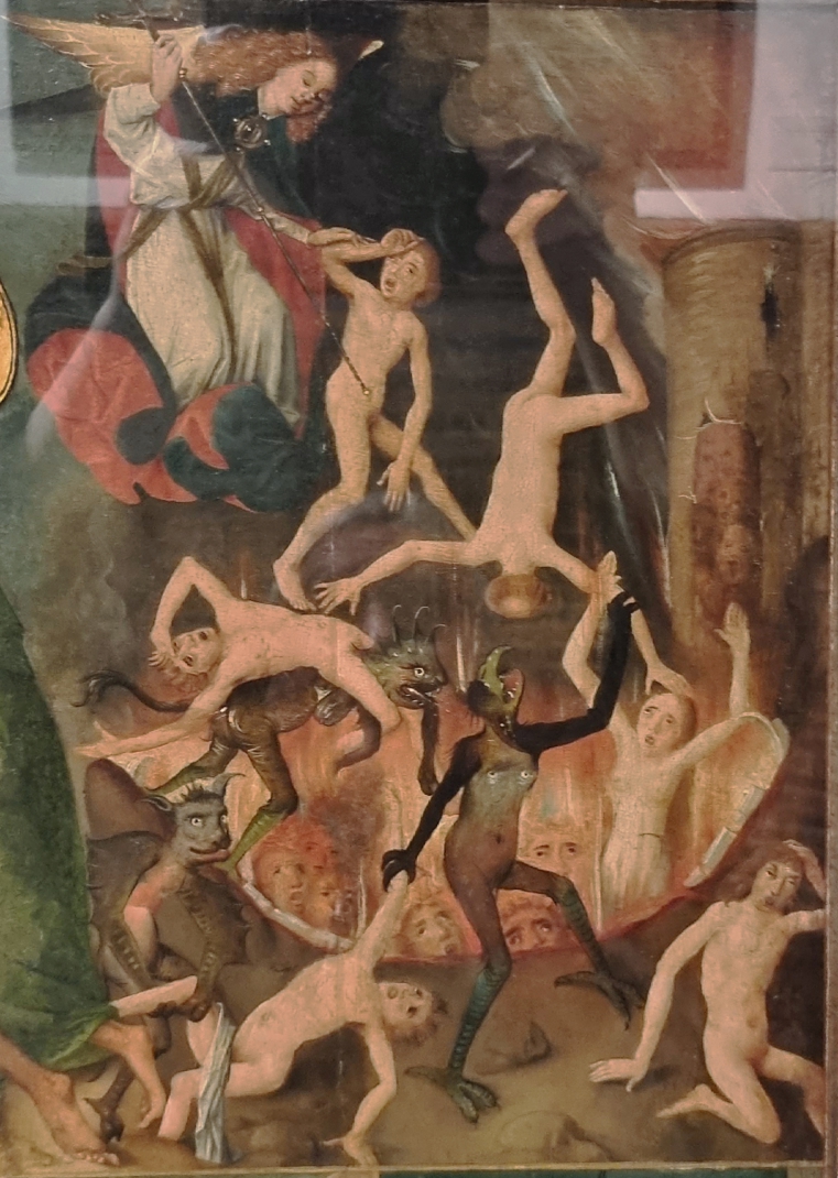 Aber noch weit beeindruckender als all die doch oft recht schwülstigen Darstellungen ist ein Gemälde aus dem 15. Jahrhundert, von einem nicht bekannten Künstler, fein und detailliert gemalt, eine Art Belehrung über Vorteile guter Taten und Bedrohungen durch verwerfliches Handeln.