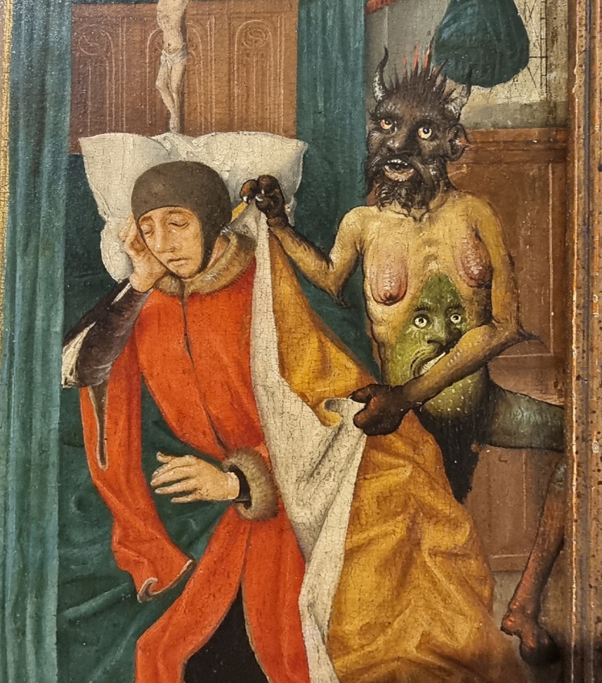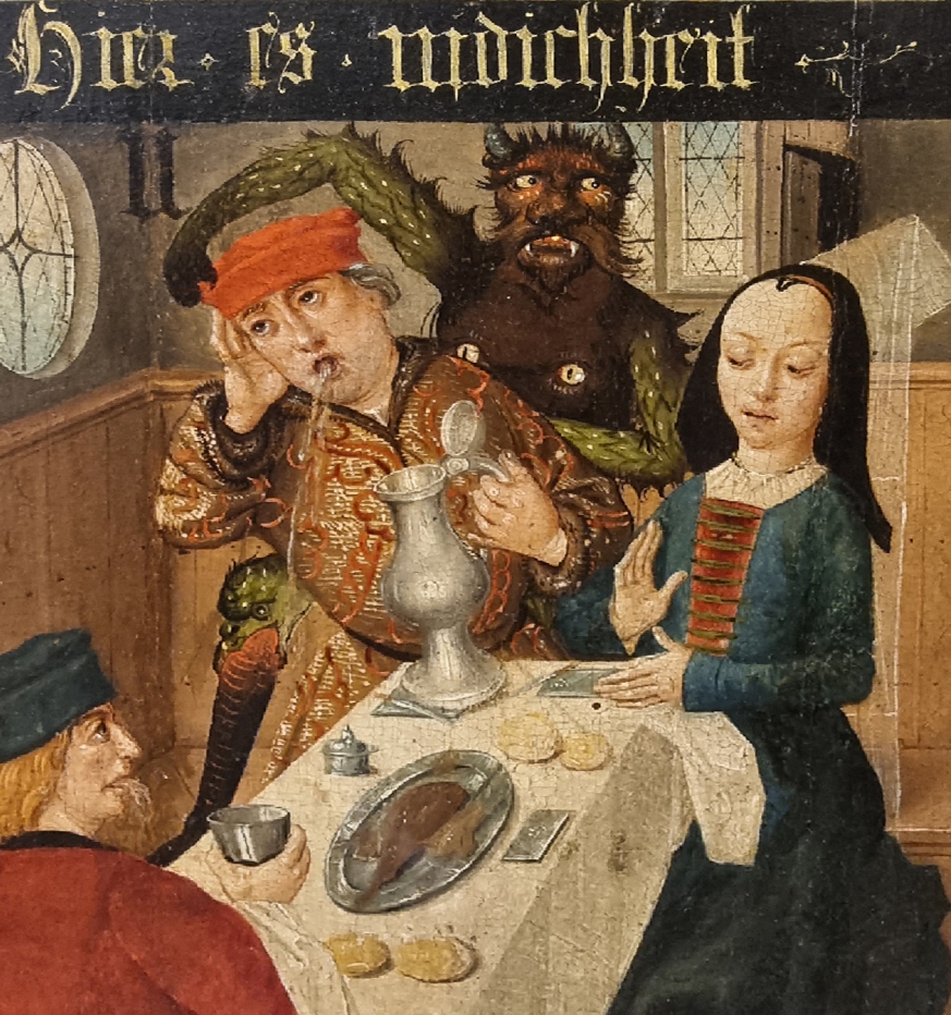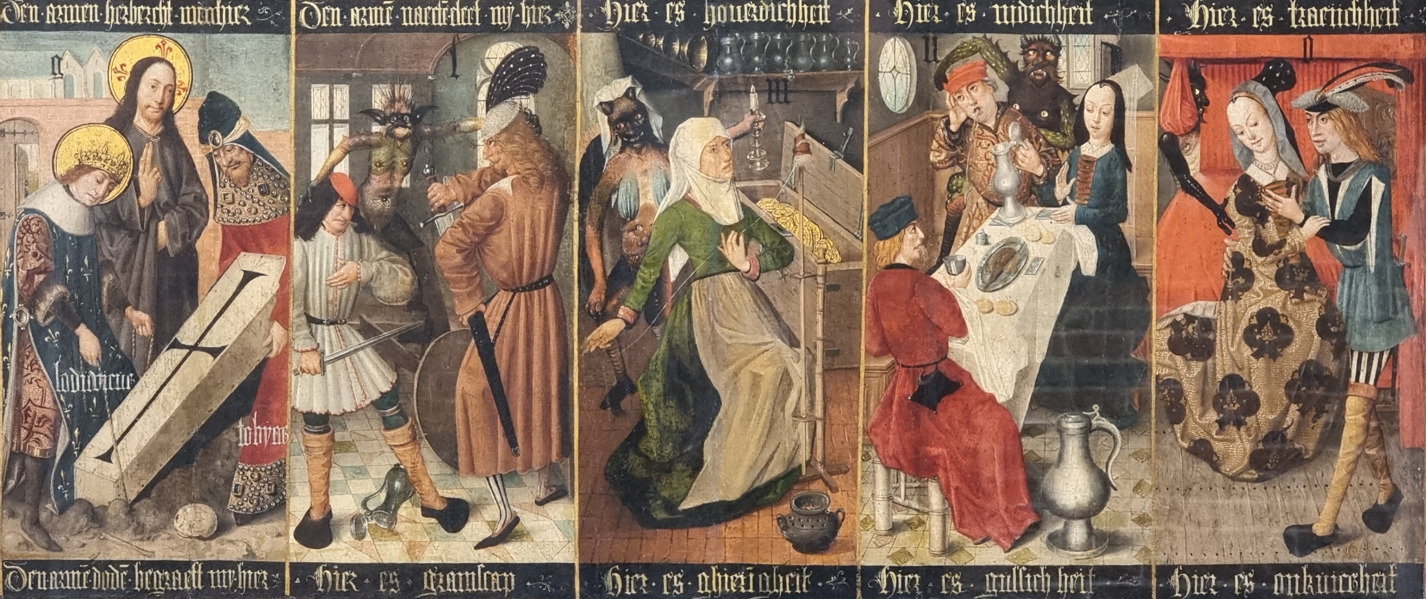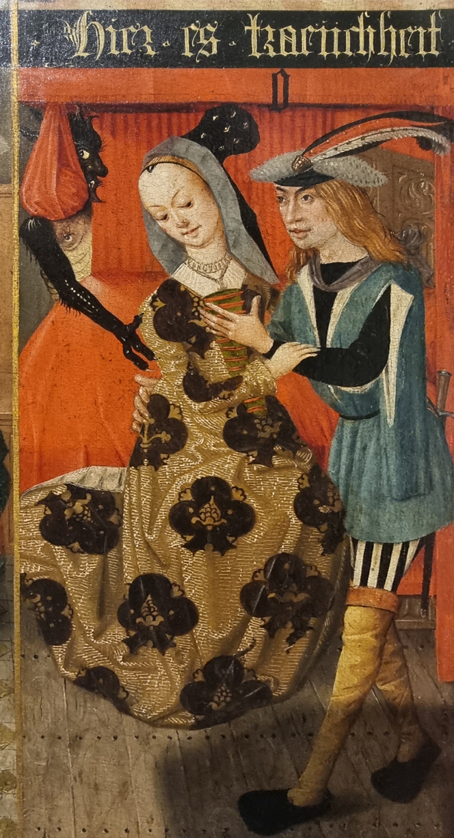 Aber noch weit beeindruckender als all die doch oft recht schwülstigen Darstellungen ist ein Gemälde aus dem 15. Jahrhundert, von einem nicht bekannten Künstler, fein und detailliert gemalt, eine Art Belehrung über Vorteile guter Taten und Bedrohungen durch verwerfliches Handeln.