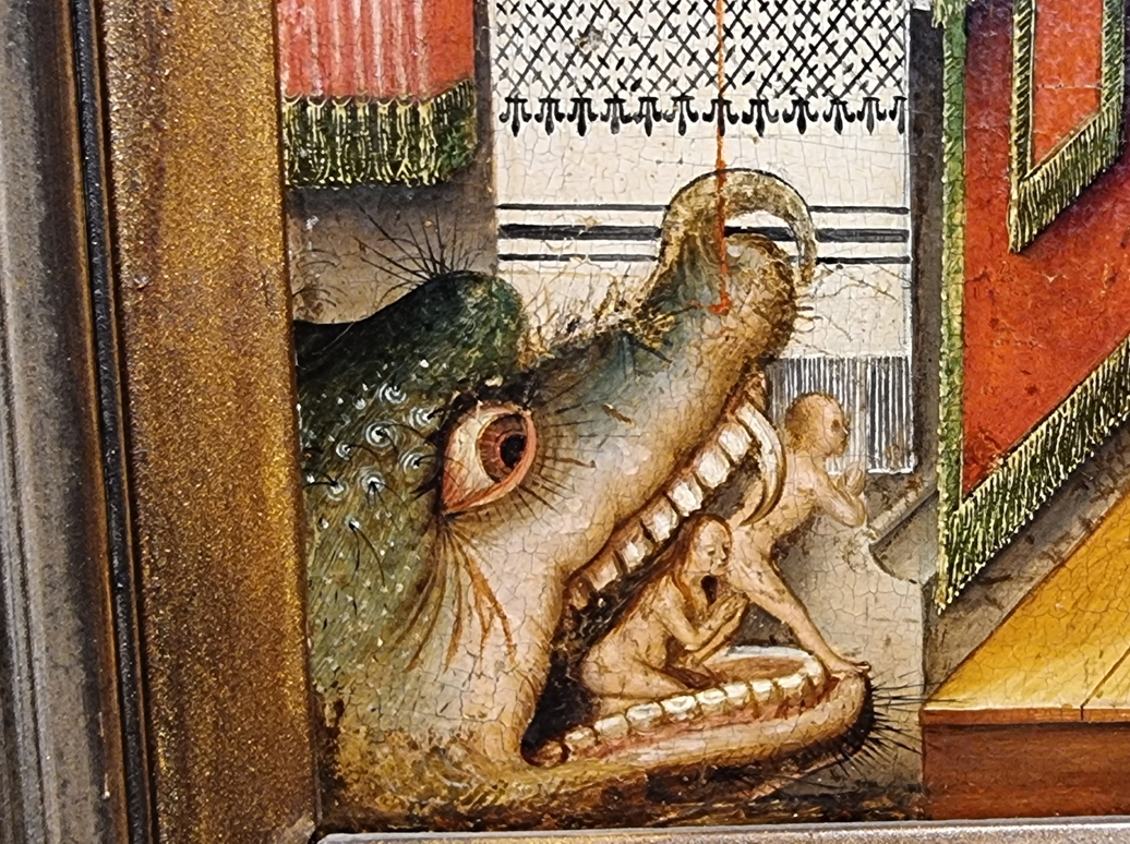 Insgesamt eindrucksvoll, und bei der Betrachtung von Details gewinnt man auch ein wenig Spaß daran, all die kleinen Teufelchen zu entdecken, die offensichtlich herumwirbeln oder versteckt hinter Vorhängen lauern, oder sich die Darstellung guter und schlechter Taten anzusehen, wobei man nicht immer zwingend erkennen kann, ob der Künstler nicht wohl ganz viele Zweideutigkeiten mit einbauen wollte.