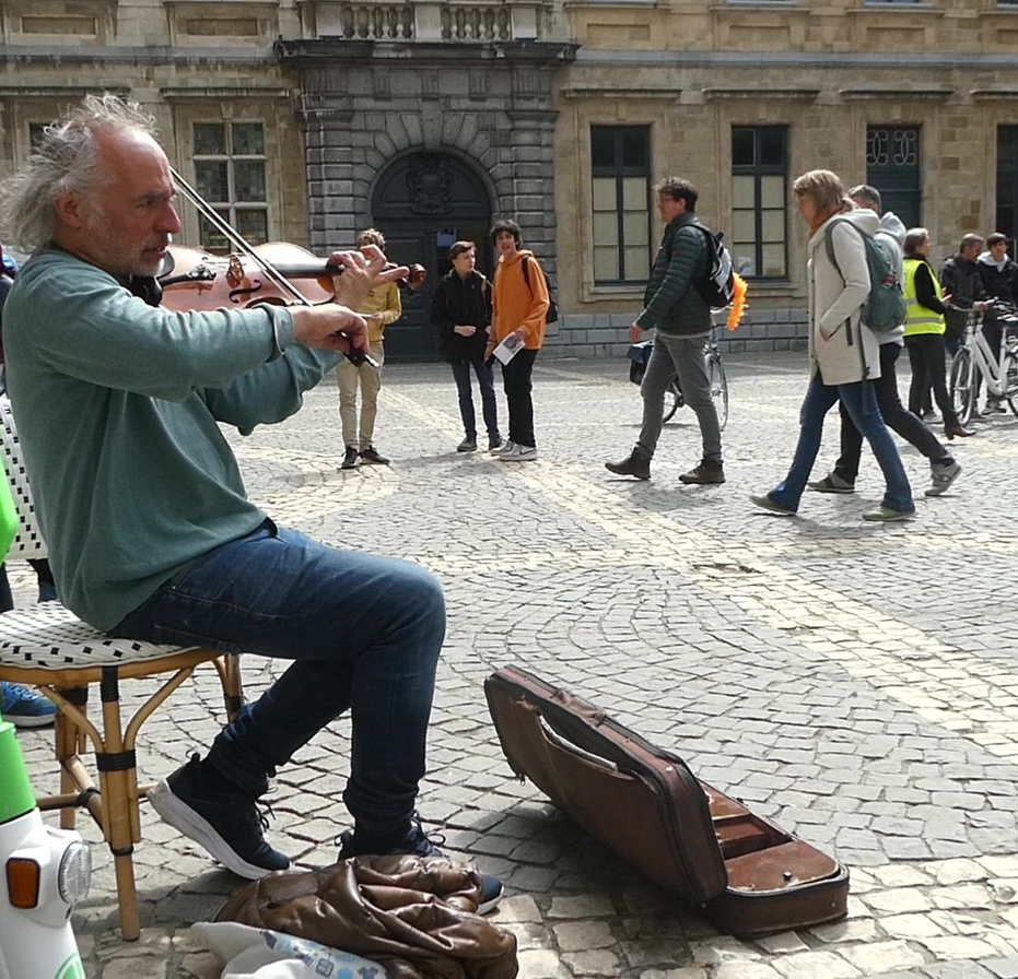 Mehr Lebenslust demonstrieren zwei Musiker, die auf dem Platz vor der Kirche aufspielen, weit auseinander auf gegenüberliegender Seite, der eine mit Geige, der andere mit Klarinette, beide perfekt am Instrument. Als wir in die Kirche gingen, klang alles noch ziemlich rivalisierend, so ein wenig um das Geld der Passanten buhlend. Als wir herauskamen, hatten sich die beiden verständigt – immer noch weit auseinanderstehend improvisierten sie, immer wieder in der Vorgabe wechselnd, spielten klassische Musik, Klassiker der vergangenen 50er- und 60er-Jahre oder auch Filmmelodien von Ennio Morricone. Ein Klangerlebnis auf dem alten Platz. Für uns so lange, bis die beiden aufhörten zu spielen.