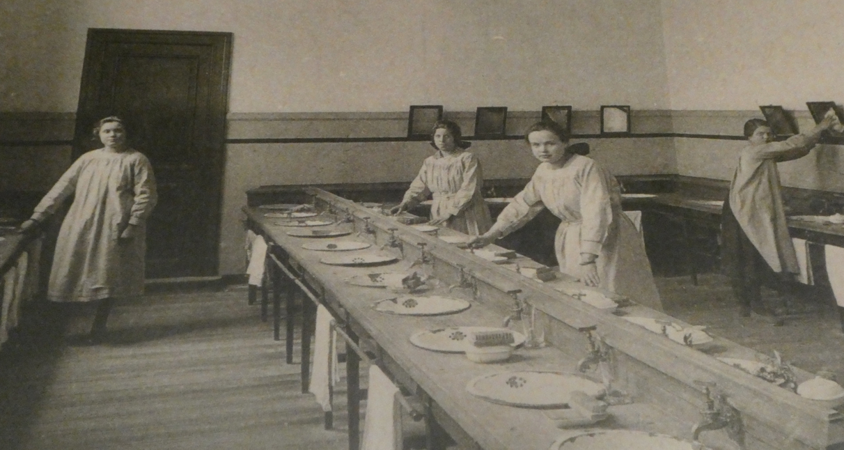 Auch die Kinder führten eine Art Tagebuch, besser ein Verzeichnis der Arbeit, die sie geleistet haben – im Waisenhaus wurde genäht, in Auftragsarbeit auch geklöppelt, gewaschen, für andere Haushalte gekocht. Gegessen wurde Haferbrei aus bemalten Tonschüsseln. Die ältesten, die zu sehen sind, stammen aus dem 16. Jahrhundert; die angewandte Technik, in der sie bemalt sind, gilt als Vorläufer des Delfter Blau. Einige der Dokumente sind einsehbar, und die Tätigkeiten sind auch in alten an den Wänden hängenden Gemälden vorwiegend aus dem 17. und 18. Jahrhundert festgehalten. Allerdings scheinen diese Gemälde die Lebenssituation im Waisenhaus doch etwas sehr zu glorifizieren, sieht man zum Beispiel die dargestellte gepflegte, hochwertige Kleidung der Kinder.