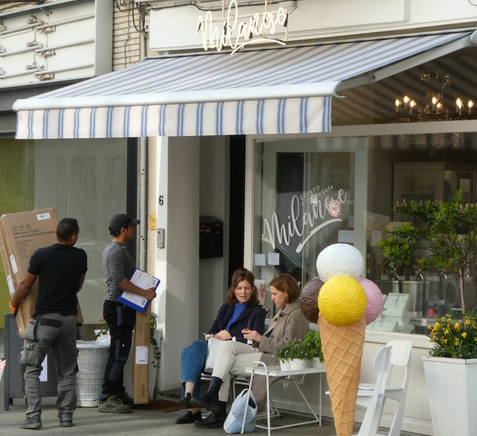 Leider haben wir dazu keine Zeit mehr. Noch einmal geht es eher zügig durch die Straßen. Inzwischen hat sich der regnerisch-graue Himmel des Vormittags gewandelt; blauer Himmel, einige Wolken, und immer wieder blitzt die Sonne durch. Antwerpen zeigt sich nun noch von einer freundlich wirkenden Seite. Um die Ecke werden noch ein paar Pralinen gekauft, in einem Traditionsgeschäft. In der Gelateria Milanese gibt es noch ein hervorragendes Eis.