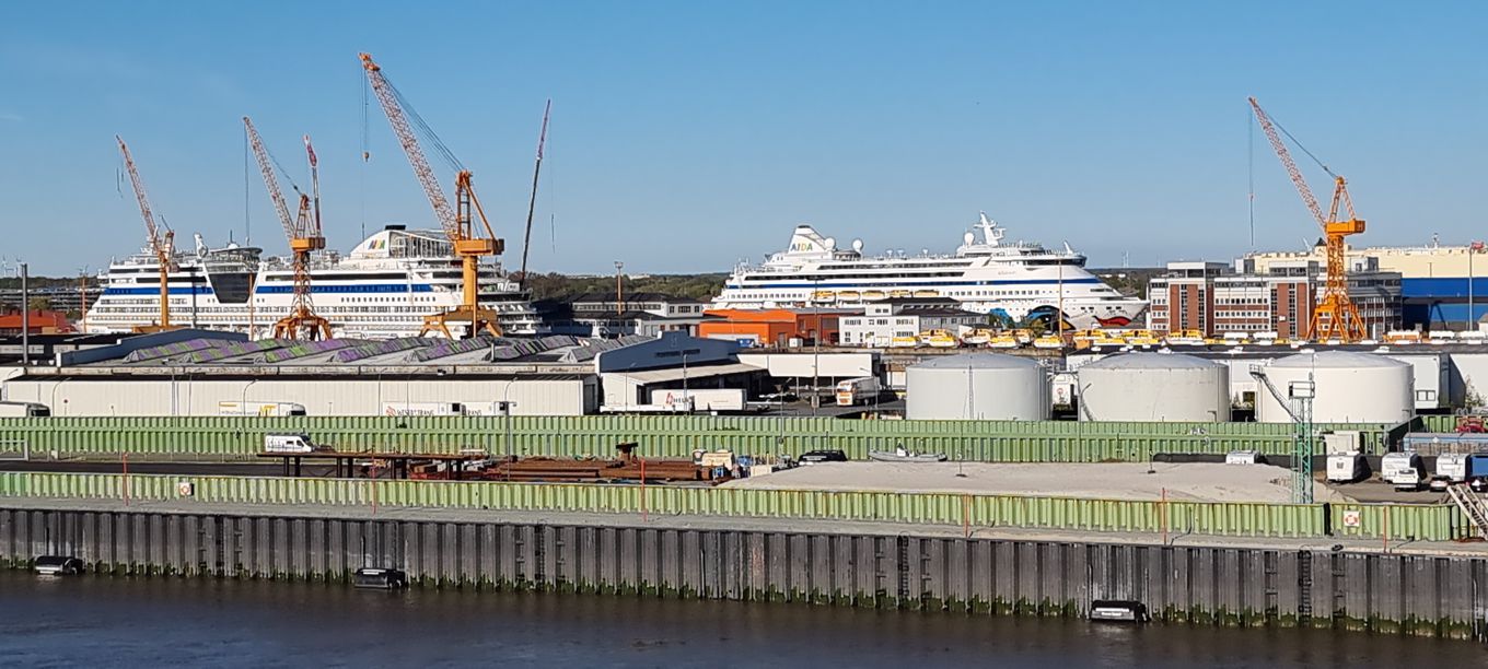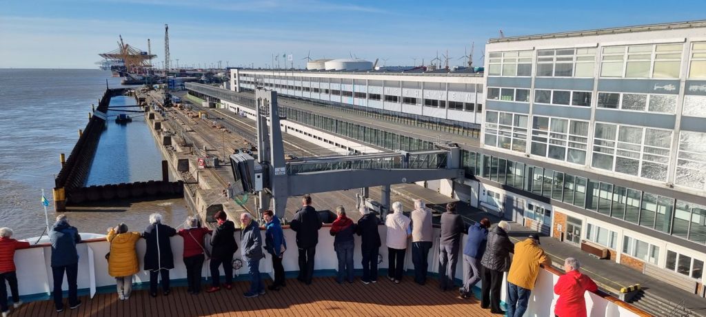 Los geht es in Bremerhaven, bei strahlendem Sonnenschein, von der Columbuskaje, dem Kreuzfahrtterminal.