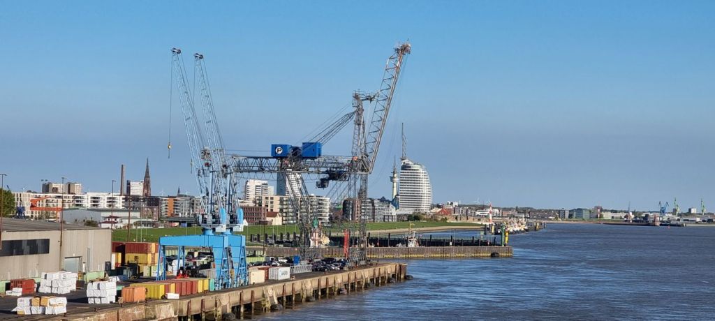 Vorbei führt die Fahrt am Containerterminal, einem der größten in Europa. Hier legen oft die weltweit größten Containerschiffe an, bis zu 400 Meter lang und 60 Meter breit; die größten davon fassen bis zu 24.000 Seecontainer. Jährlich werden davon etwa 5,5 Mio. in Bremerhaven auf die Schiffe verladen.