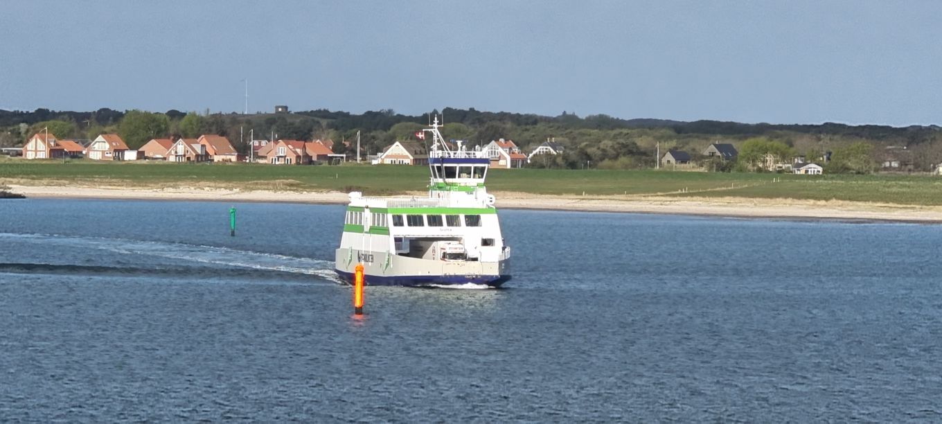 Auf der idyllischen Hauptstraße geht es zurück zur Fähre, mit dieser rüber zum Festland, im Blick zurück noch etwas Sandstrand, dann zur MS Deutschland. Die Fahrt wird weitergehen, über den Skagerrak hinüber nach Norwegen, zum Flekkefjord.