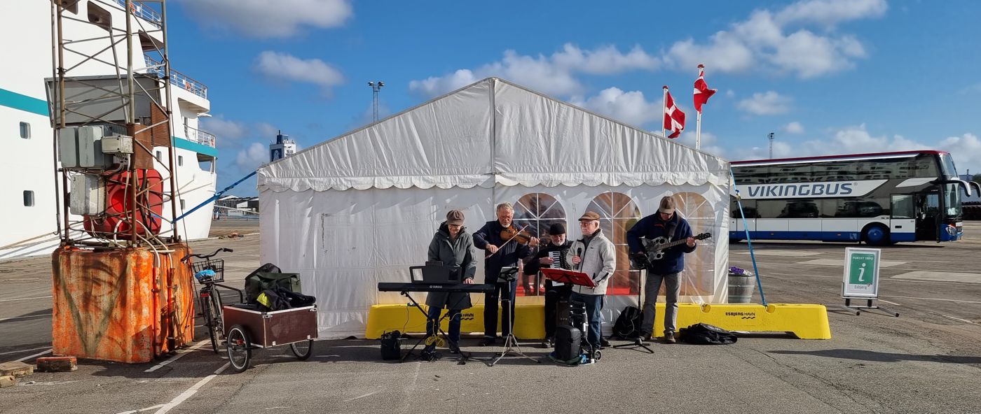 Bei Ankunft spielt vor dem Schiff eine dänische Rentnerband schmissige Lieder; wir wagen ein Tänzchen, freuen uns mit den Musikanten und starten hinüber zum Anleger der Fähre nach Fanø.