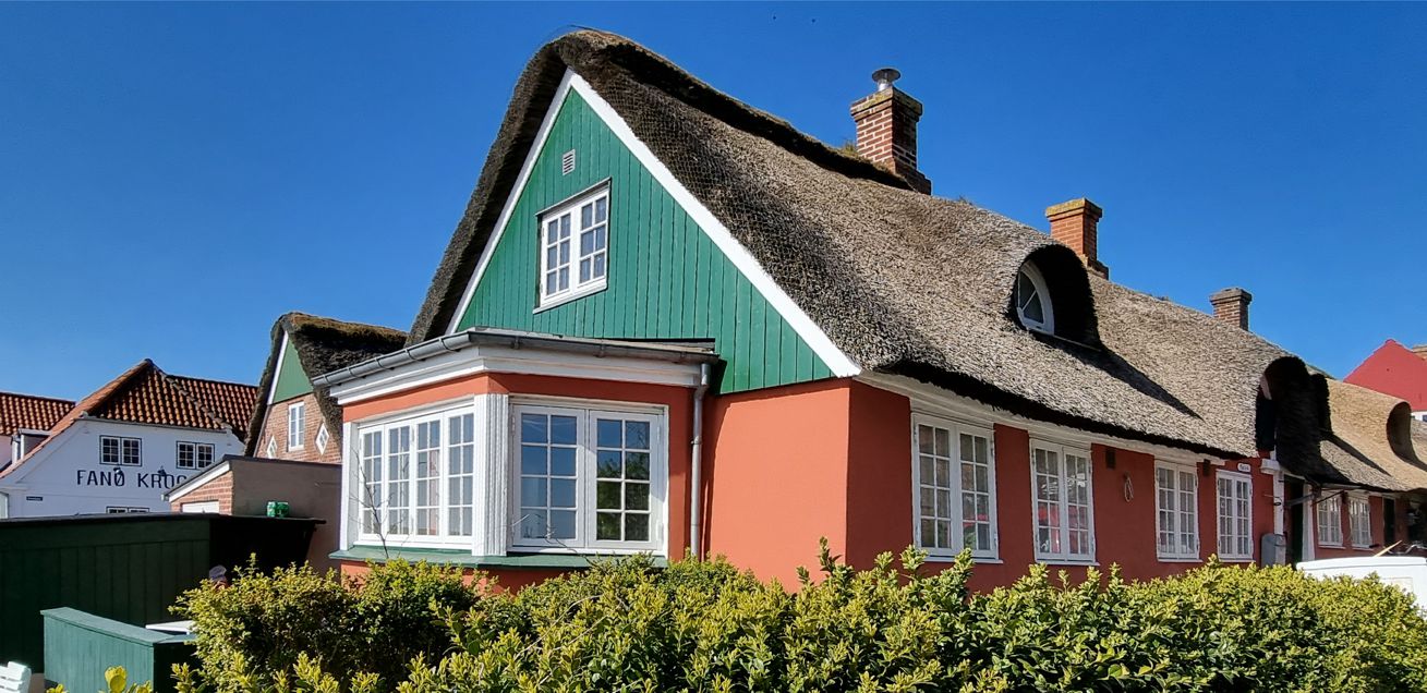 Unser Interesse gilt aber der vor Esbjerg liegenden Insel Fanø, eine ziemlich flache, sandige Insel, auf der sich viele der für diese Region typischen traditionell gebauten Häuser mit den Reetdächern befinden.