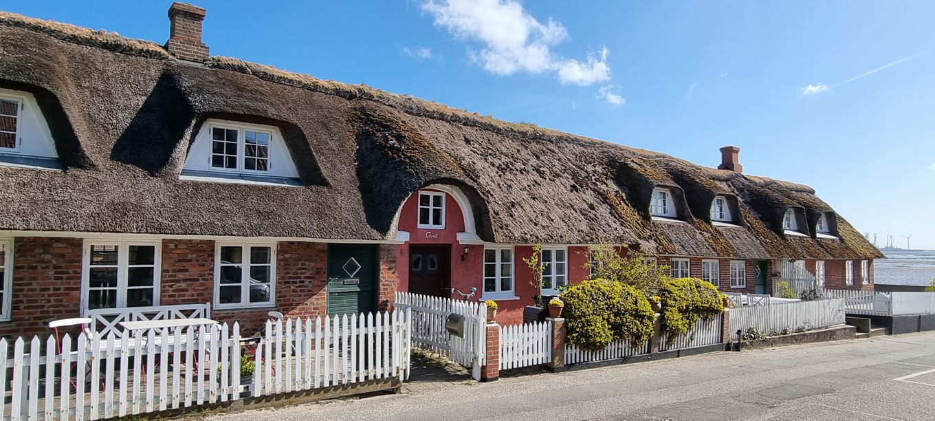 Die Dächer sind häufig mit Reet gedeckt, haben meist eine runde Dachgaube, die alles ziemlich niedlich wirken lässt – vor allem in Kombination mit den kleinen Gärten um die Häuser, umrandet mit weißen Zäunen und Hecken.